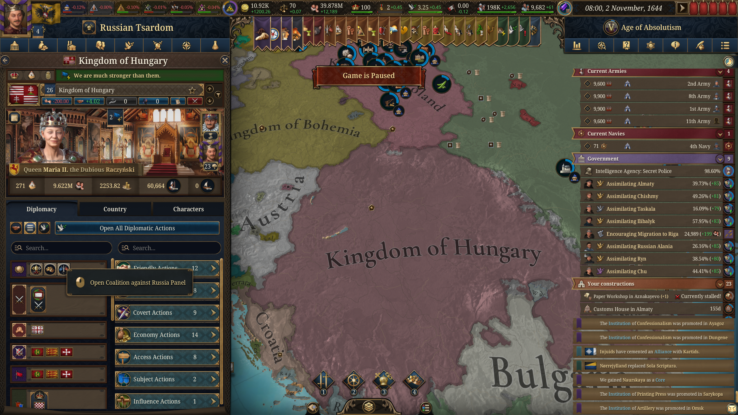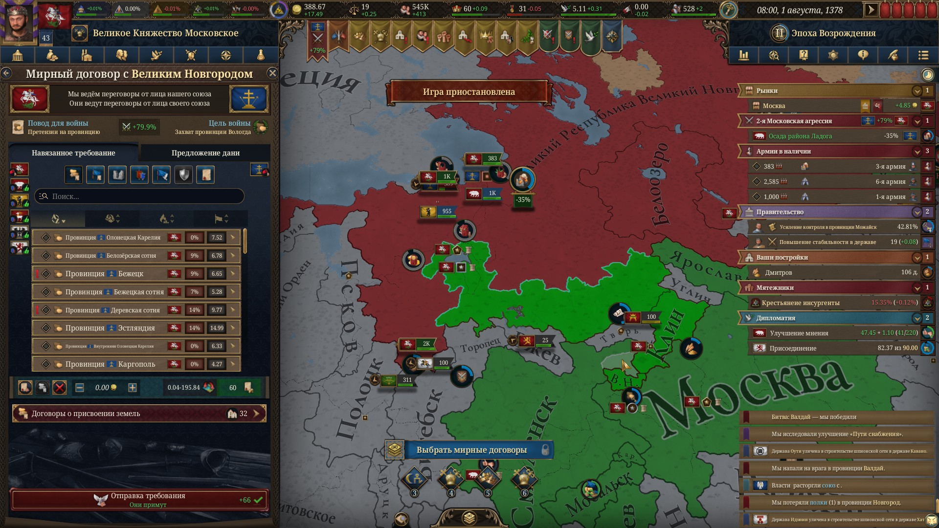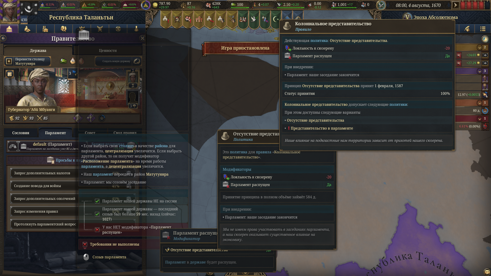 Бля, меня колонии уже обгоняют в мощи, не то что вассалы. Приходится повышать вложения в дипломатию, чтобы самому не ездить на все мятежи.