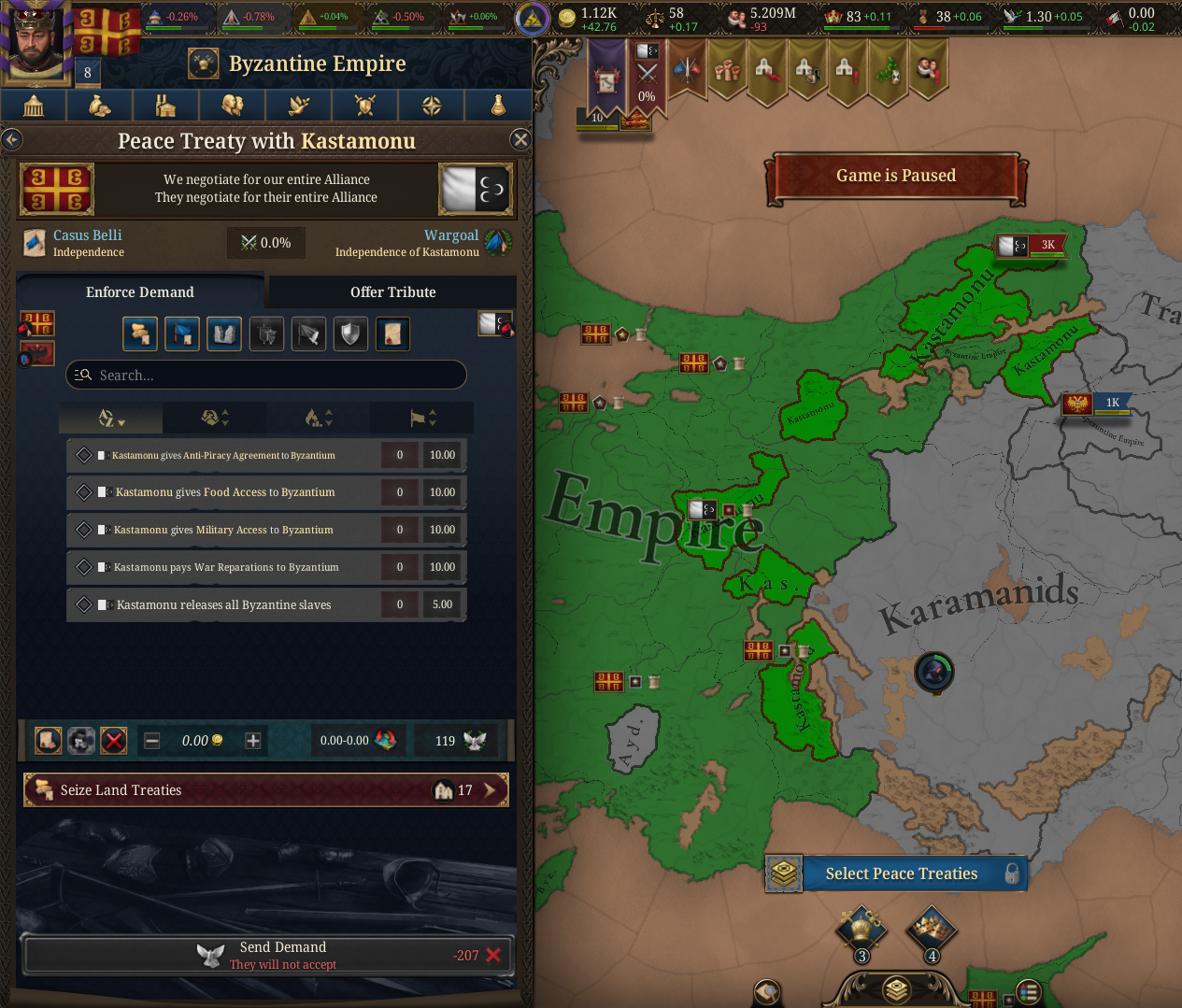 Коалиции в этом кале просто не работают как сдерживающий фактор Мне объявляют коалиционную войну, я предлагаю чтоб у меня забрали 20 престижа и отъебались, все буквально я на втором пике в этой ситуации