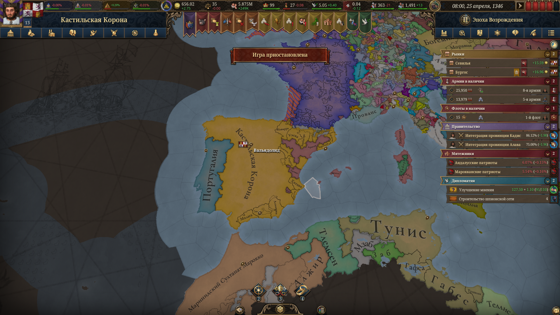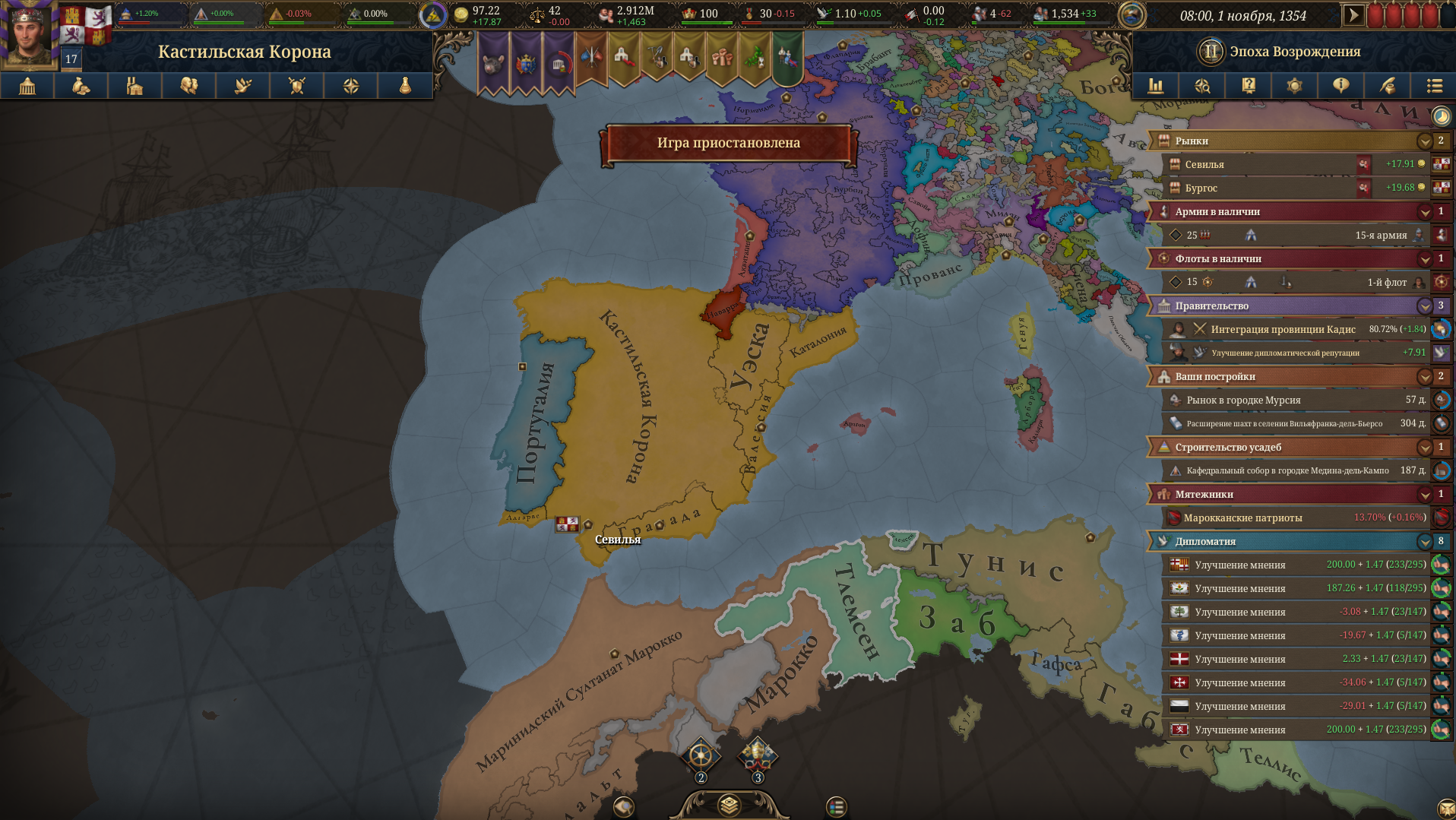 >>50476301 Еще один скрин от тебя, не заметил. На кастыле пока играешь разберись как работает механика морского присутствия. Главное по ивенту после смерти правителя перенеси столицу в кордову или севилью.