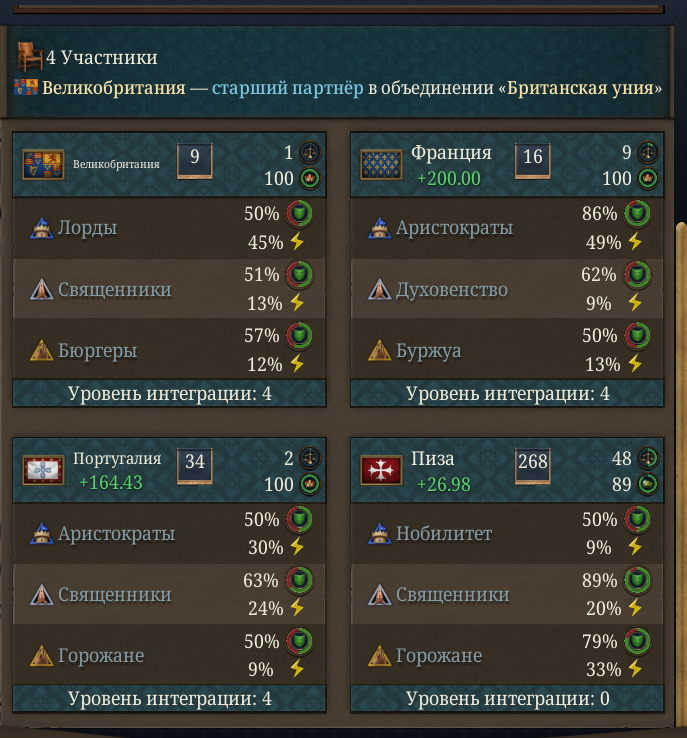 Впрочем, сколько бы я ни играл, в 16 веке Францию начинает пидорасить восстаниями, в этот момент можно устроить им ресентимент и сатисфакцию. Да и вообще — равно или поздно по техам их обгонишь и размотаешь так или иначе.