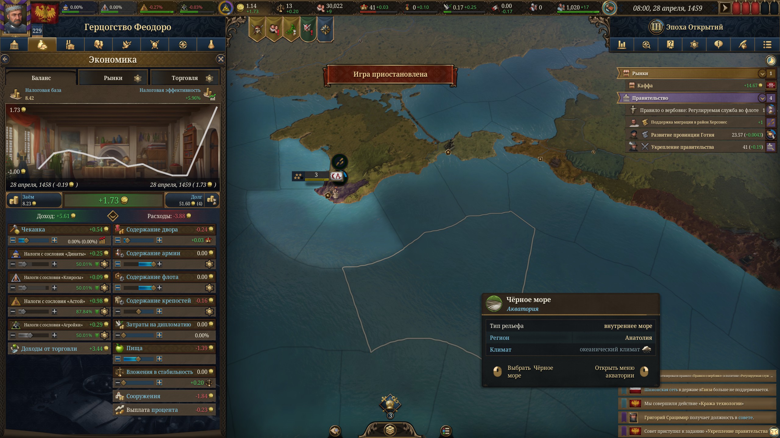 Какой же искусственный идиот даун всё-таки, играю за Швецию, доиграл до СИТУАЦИИ с малым ледниковым периодом, рыночек разумеется стоит на автоматизации, и вдруг я замечаю, что аккурат под конец месяца, как похожие проблемы у анонов выше по треду, происходит анекдот: — Изя, а почему нигде в мире так и не удалось построить коммунизм? — Потому, Сёма, что в процессе его строительства рано или поздно всегда кончается еда. Пришлось экстренно застроить все рыбные/с неприхотливыми злаками места вокруг Стока, прошло полгода, и снова, конец месяца, вылезает уведомление, что вашему срыночку пиздец, продовольствие скоро ВСЁ, я решил заглянуть в срынок, и, ёб твою мать, Йухан, шведские купцы косплеят Вышнеградского с его: "недоедим, но вывезем!". На севере страны бомжи уже скоро начнут принимать ислам от голода, а эти черти вывозят рыбу и зерно в другие страны, ай да политика, ай да геостратегия! Неужели нельзя было добавить переменную, что мол если срынок стоит на автомате, во время малого ледникового периода еда не экспортируется.