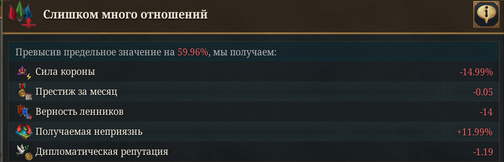 >>50456462 Сотни раз проверено, а на сто первый тыкал с недоумеванием, почему я в свою прову не могу пройти, а там вассал отвалился через восстание. Полностью. И -200 отношений. Ну баг мб или что, я не знаю, может у него еще какая хуйня помимо этого произошла.