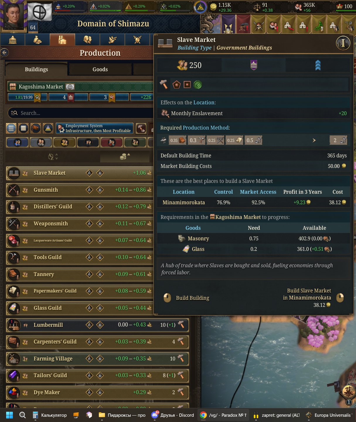>>50475307 Хорошая претензия, поставил всё на автомат и сидит афк. Чтобы такого избежать запомни, автоматизация рынка стремится к максимальной выгоде, я советую её ставить на 80%, остальное ручками менеджить под нуждый крестьян, работяг и горожан, на нужды аристократии и клержей можной забить. >>50475320 Анон выше прав, строй ргошки и рынки, сам скатывайся в крепостничество и традиционную экономику, завалишь весь мир дешевым сырьем и улетишь в космос по прибыли. Только к глубокому лейту производство начнёт давать больше чем такой подход.
