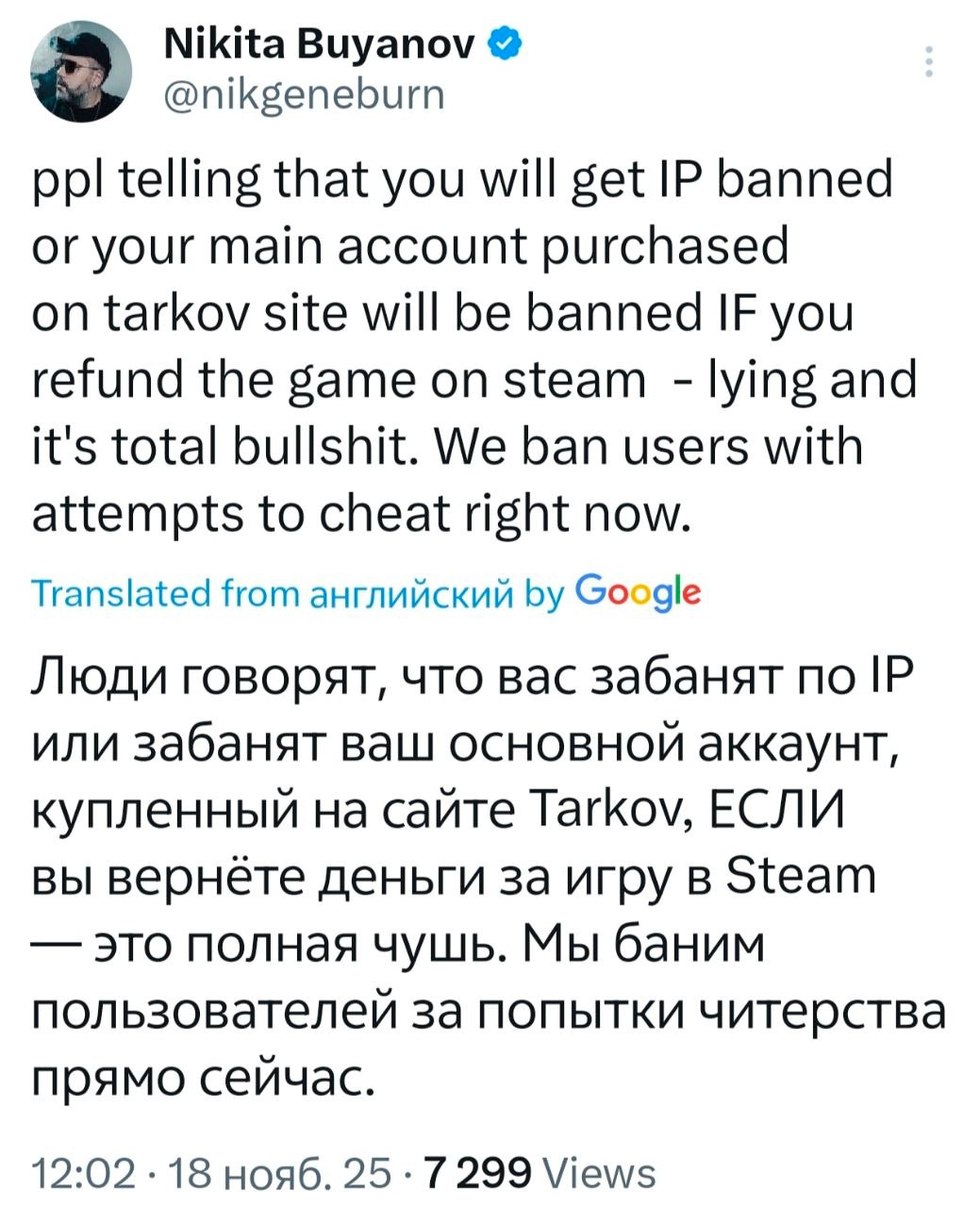 >>50458075 Удивительно, что вообще 29% положительных отзывов. Учитывая какой негативный опыт приносит тарков, неподоготовленное быдло даже не смогло зайти в игру, а те кому повезло охуели от системных требований и не смогли принять, что их комп 10 летней давности выдает 30 фпс, хотя танки и дота идут в 144 фпс. А тот, кто ради рофла минусанул и рефанднул получили бан основного акка по IP и железу, ибо нехуй так делать. Кстати 4 день вайпа, а тарков в топе твича с 272к вьюверами, так что релиз удался. мимо сотрудник БСГ на зп