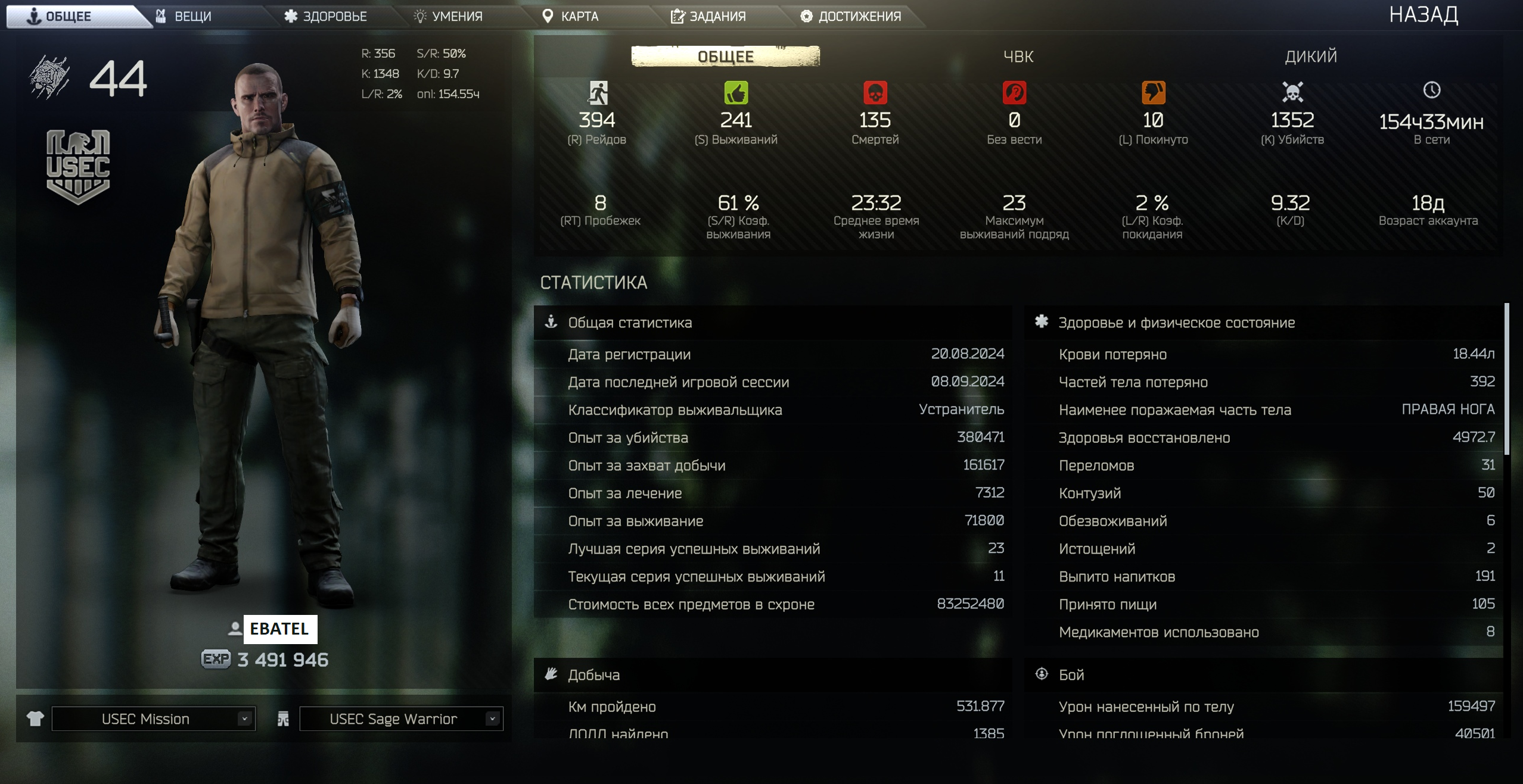 Но старайся не доводить до 0 рублей имущество и счёт, это значит, что ты что-то глобально неправильно делаешь в каком-то моменте. Например, если баланс опускается до 500 000 р., то надевай только дробовик мурку 155 и какой-нибудь 3 класс и наушники, больше ничё не напяливай, остальное в рейде снимешь. В общем, это временная проблема и скоро она будет у тебя с улыбкой вспоминаться, если осилишь конечно.