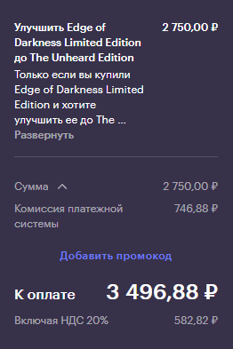 Че за комиссия платежной системы в 746 рублей? Блять, нигде больше такой хуйни не видел при оплате. Нахуя буба цену в 2700 написал, хотя со всей хуйней 3500 выходит?