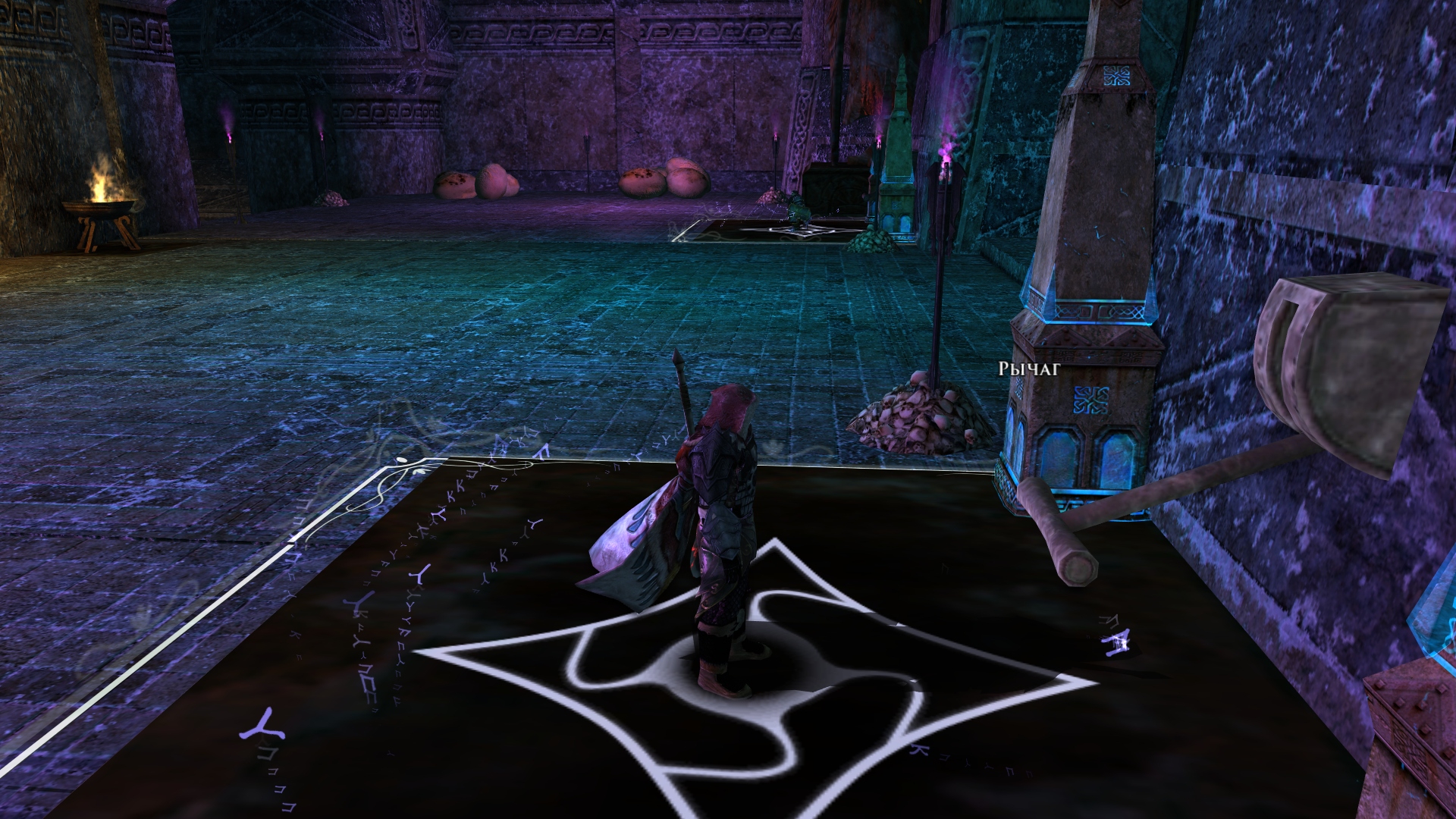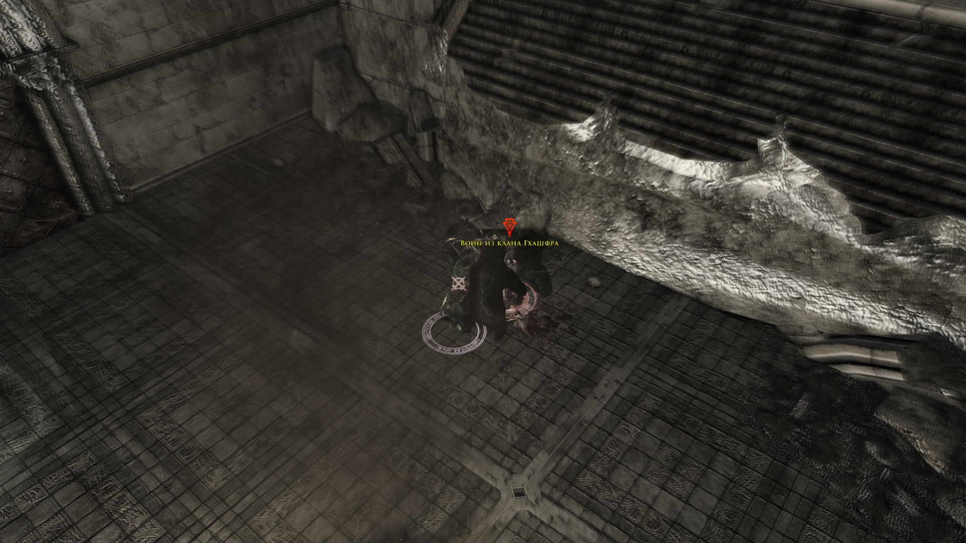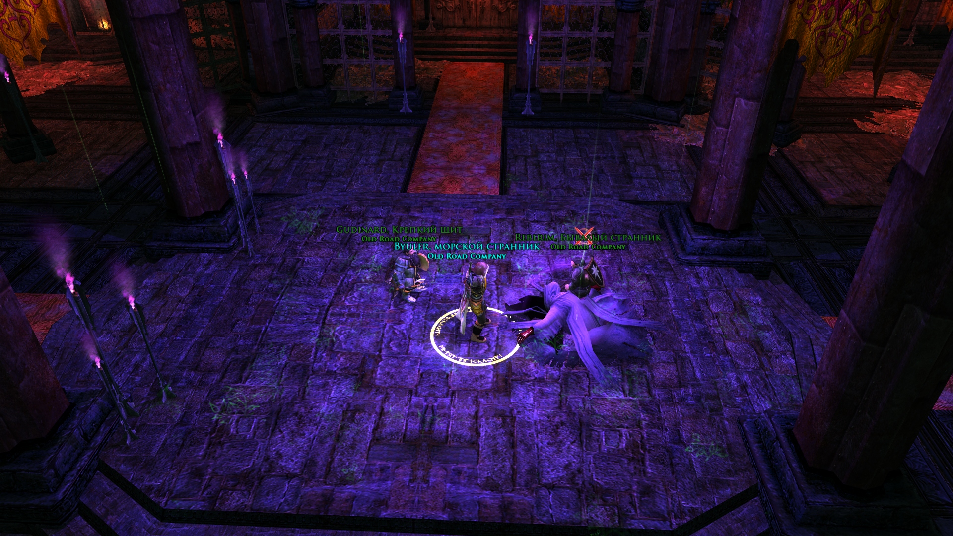 Карта, телепортирующая в Ост Гурут, подаренная гномом Реберимом, соблазняла долго, а на такой сложности я добирался бы с 16 уровня до 20-го ещё несколько месяцев. Докачался, тут же нажал и попал в мрачненько местечко: разрушенная крепость, вокруг такие звуки, что чокнуться можно - именно это сделал эльф, играющий на флейте недалеко от края горы (можно и упасть, вообще-то). Бедалага рехнулся от этого всего вот, от этих звуков, от этого места