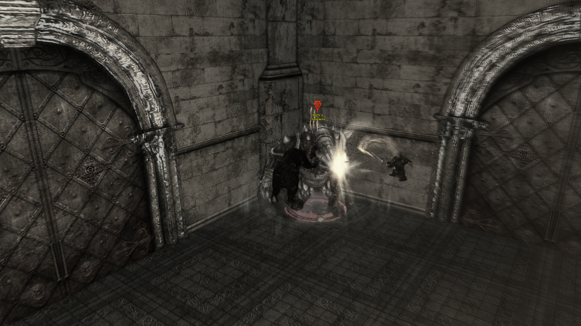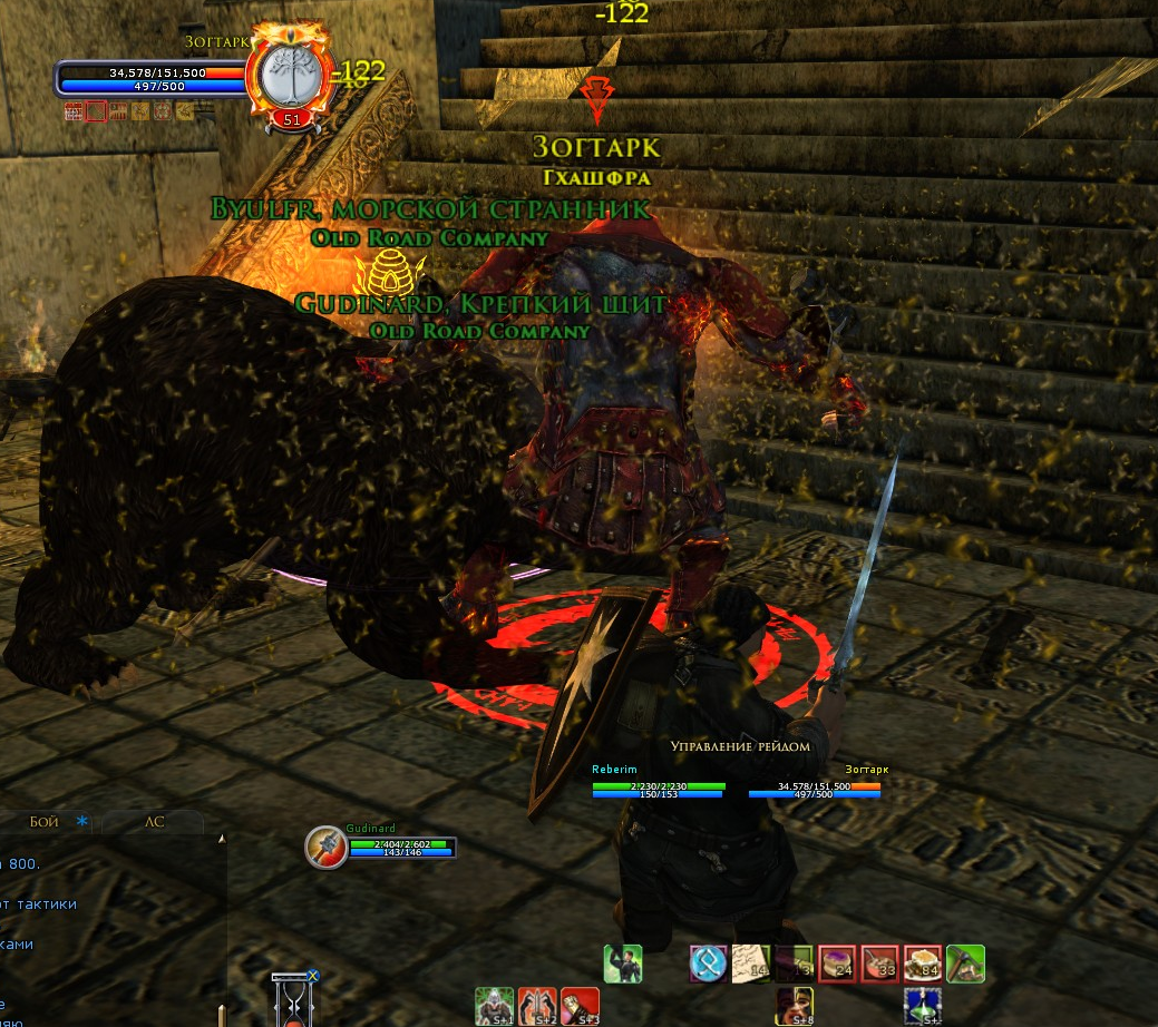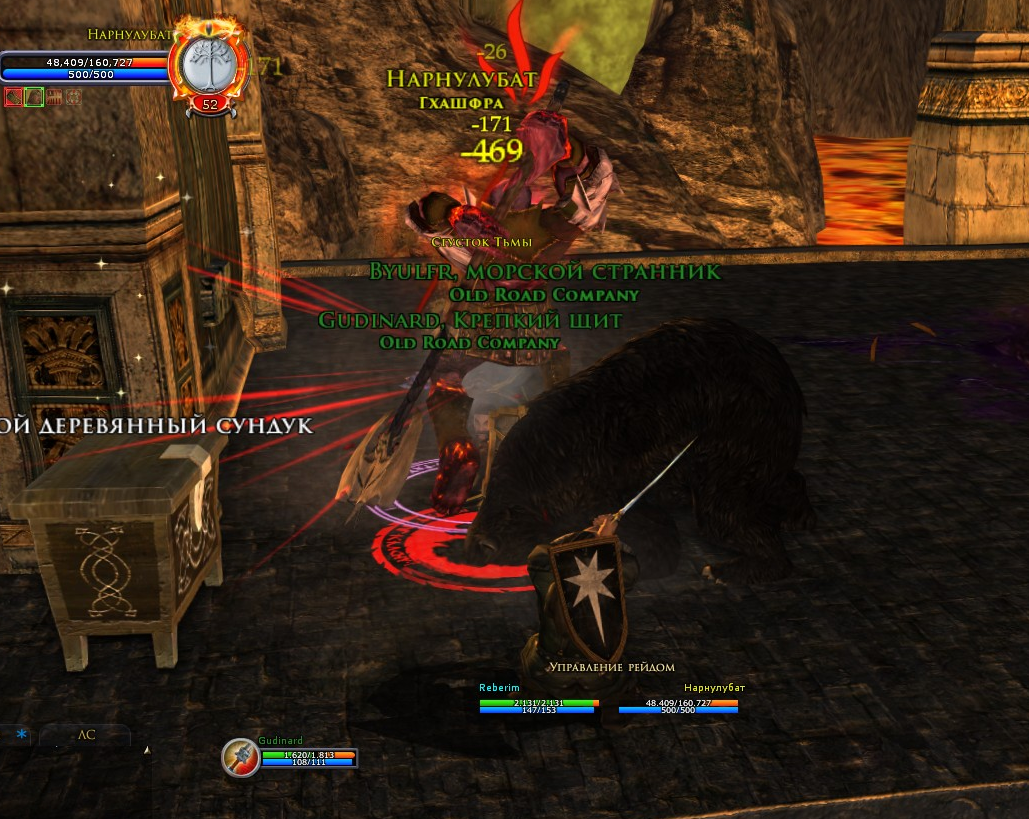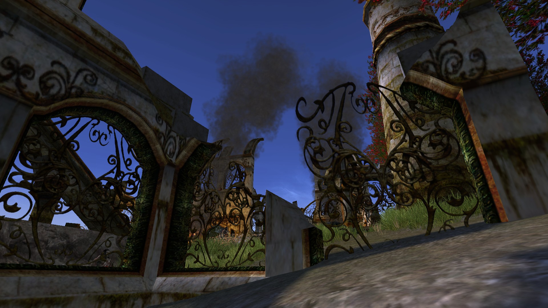 Карта, телепортирующая в Ост Гурут, подаренная гномом Реберимом, соблазняла долго, а на такой сложности я добирался бы с 16 уровня до 20-го ещё несколько месяцев. Докачался, тут же нажал и попал в мрачненько местечко: разрушенная крепость, вокруг такие звуки, что чокнуться можно - именно это сделал эльф, играющий на флейте недалеко от края горы (можно и упасть, вообще-то). Бедалага рехнулся от этого всего вот, от этих звуков, от этого места