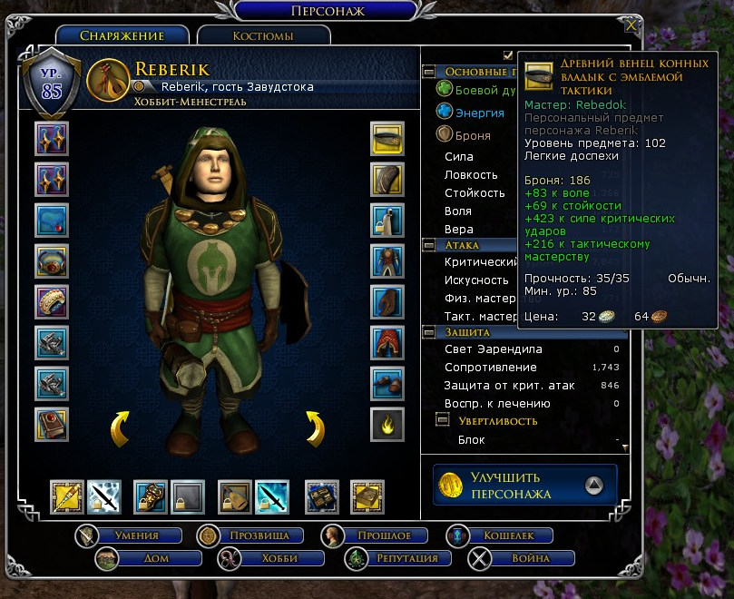 Два часа бегал по кругу, выбирая дом. Определился ...а он только с 15-го уровня, блин! Обмундирование по почте - хотя и не честно, но пришло вовремя: меня как раз начали как-то слишком много бить, а урук-хаи по сложности вообще выглядели как подземелье, так что начало маленько дизморалить. Расслабляться по-прежнему нельзя, но стало гораздо лучше Объём исследовательности и неисследовательности мира одновременно бодрит и давит: игра изучена на 0,001%, а значит впереди много всего, но и есть понимание, что дальше каких-нибудь 3% я не доберусь буквально никогда. Этот мир так и останется для меня неизведанным и неизученным, что и, опять же, давит, и позволяет отыгрывать того самого хоббита, который из своего изолированного мирка вообще-то ни ногой