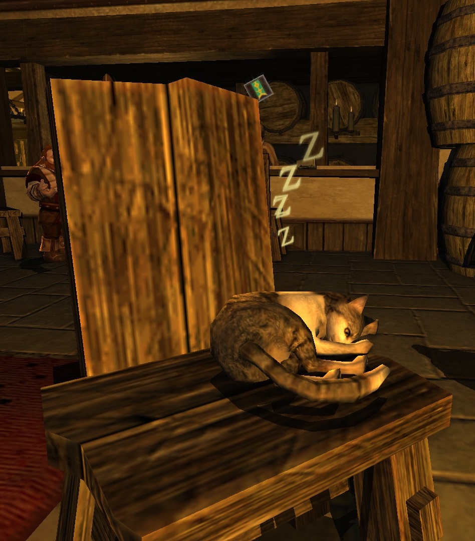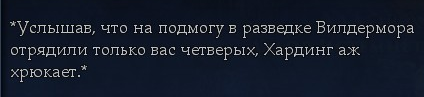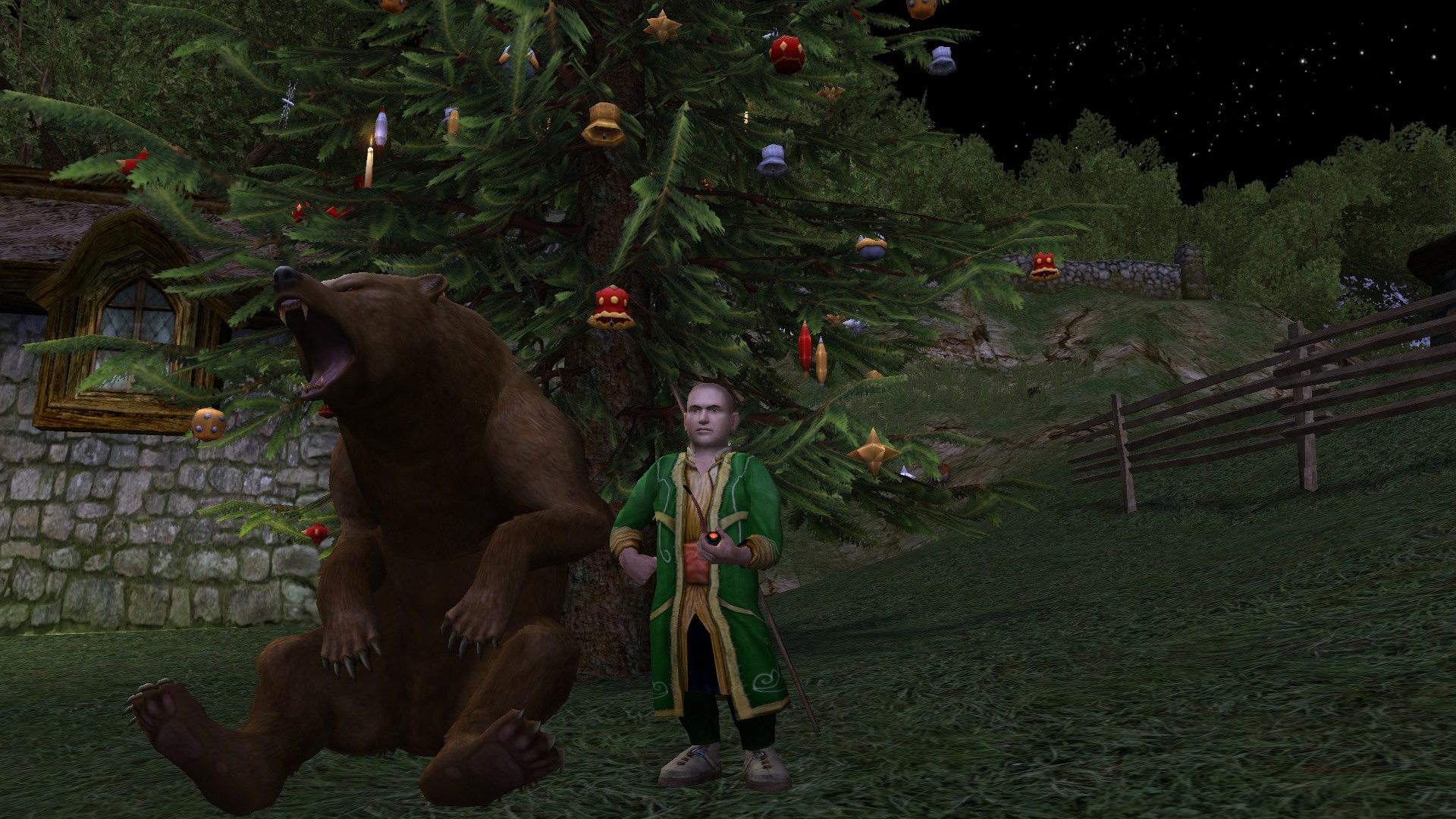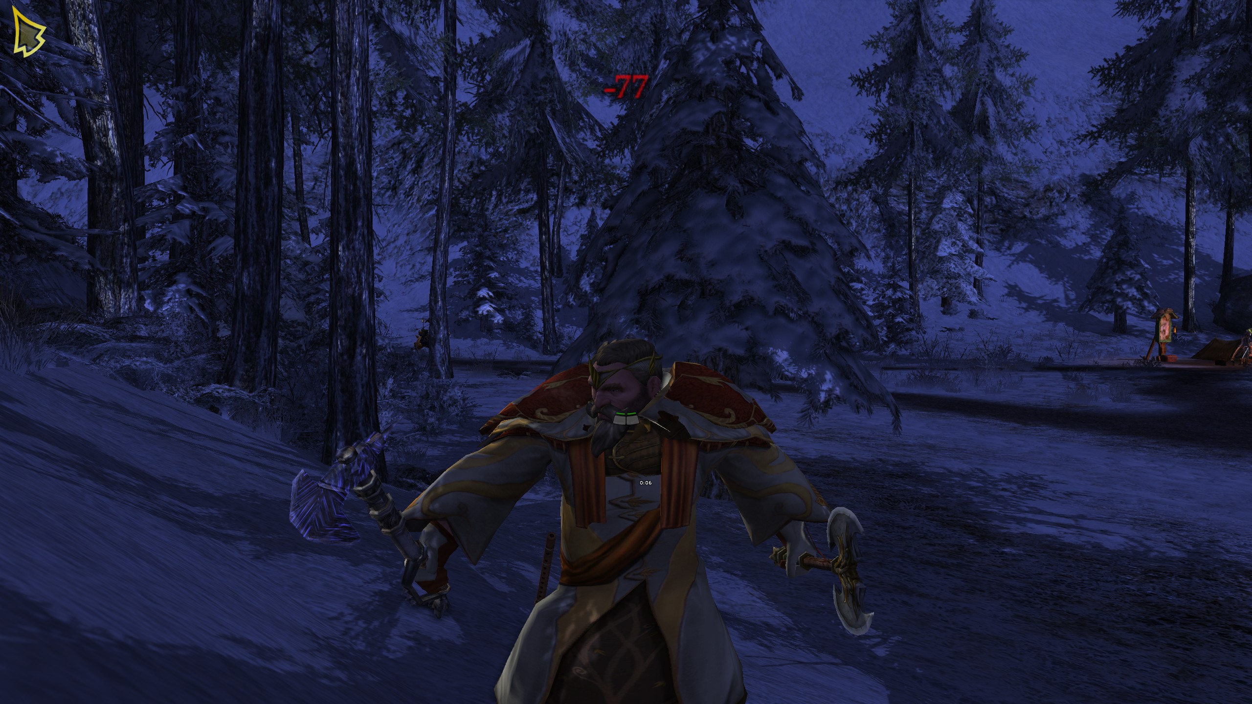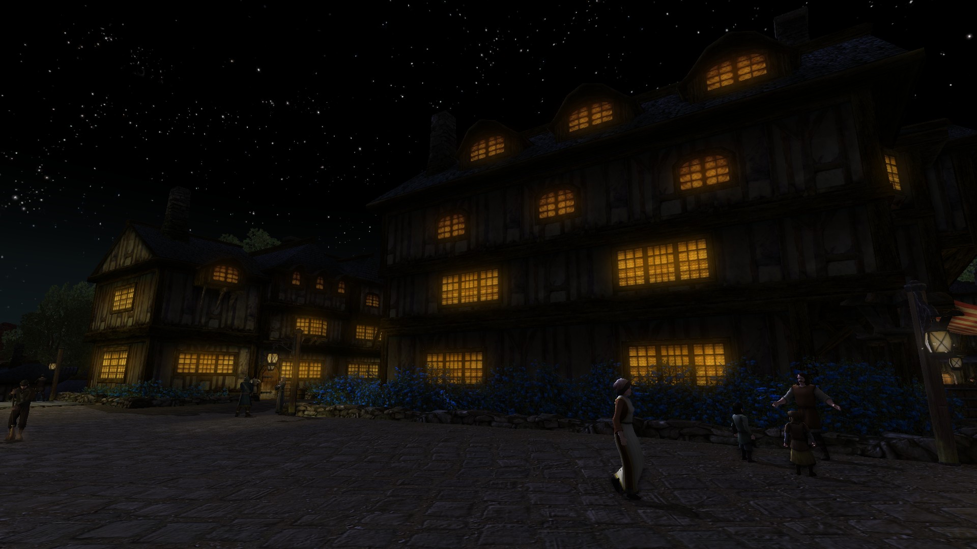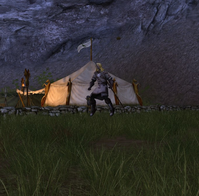 Зашёл посидеть у костра в лагере Адсо. Ну, просто перед сном насладиться этим великолепным миром. Сидим-сидим. Вроде хорошо: костёр, палатки, звёзды, Луна. Ай, думаю, погнали в Вековечный лес - один раз живём! Захотелось острых ощущений, видите ли. Сначала даже мило... Мол, думаешь, пугнут немного и отпустят. Только, вот, чем дальше в лес... Волки, блин, лаза живая какая-то или что, пауки вроде, даже и не разглядел - бежал без особой оглядки Но какая же милейшая игра: наваляли пауки какие-то в тёмном лесу, а пришёл в себя в милейшей, добрейшей, безопаснейшей деревне. Только дома у меня тут нет и думал заночевать где-нибудь в безопасном месте, но чтобы меня не было видно. Только один гном быстро всё понял и позвал в гости - ночую под крышей, хотя и походно-палаточная романтика тоже весьма неплоха