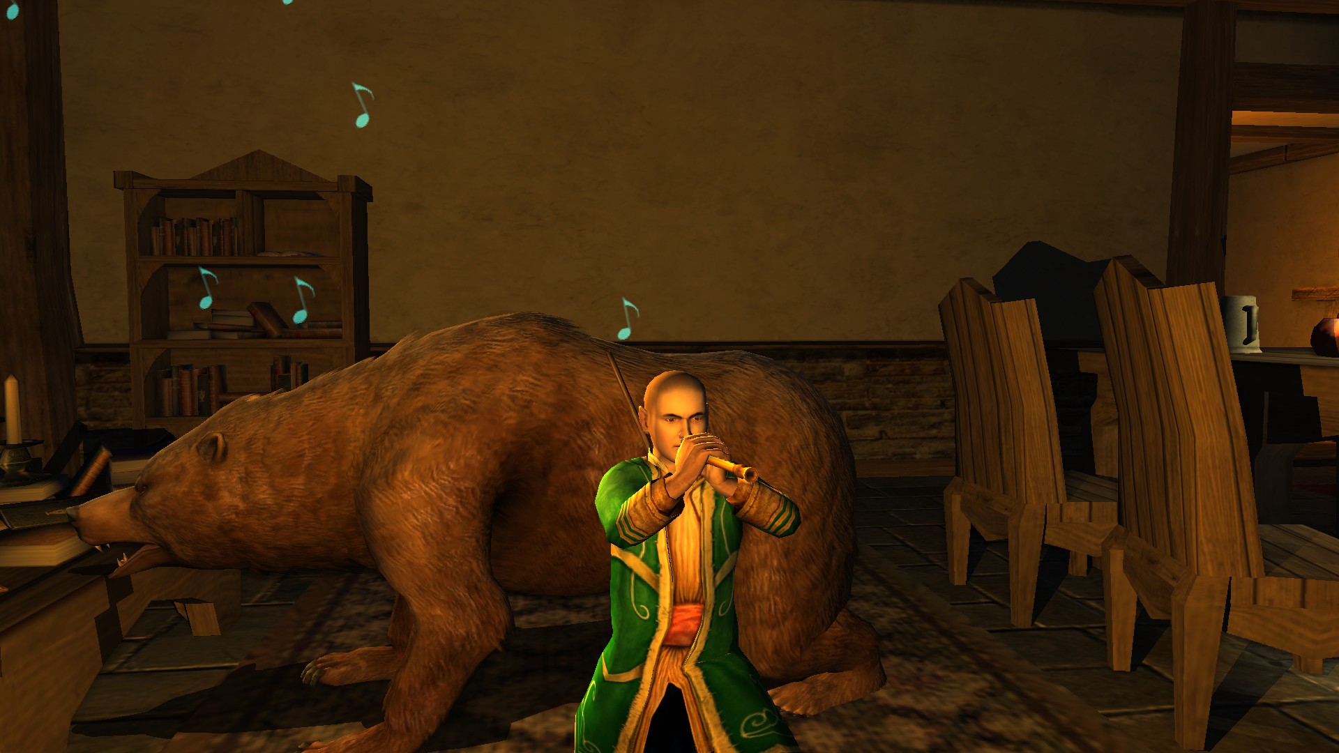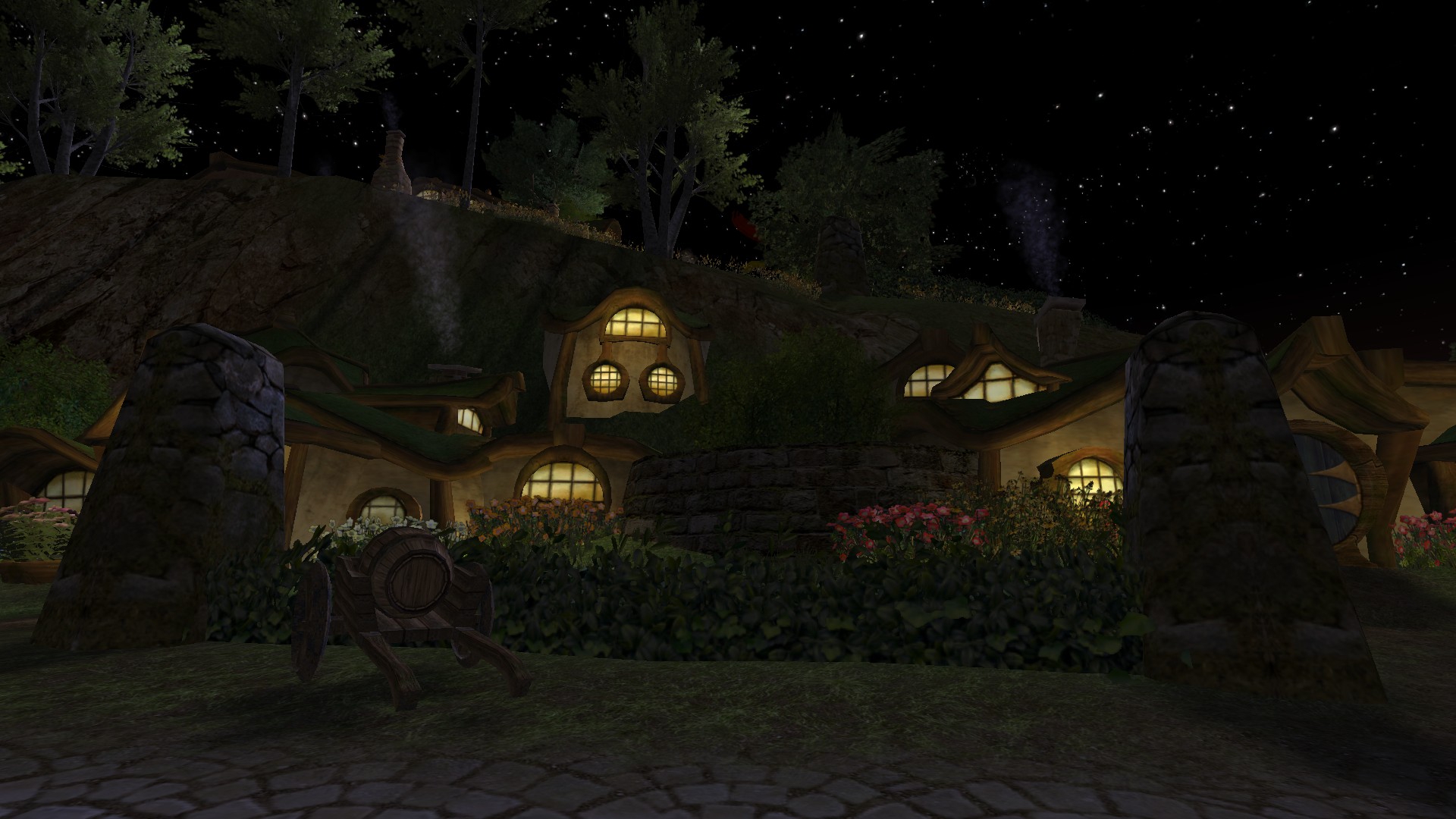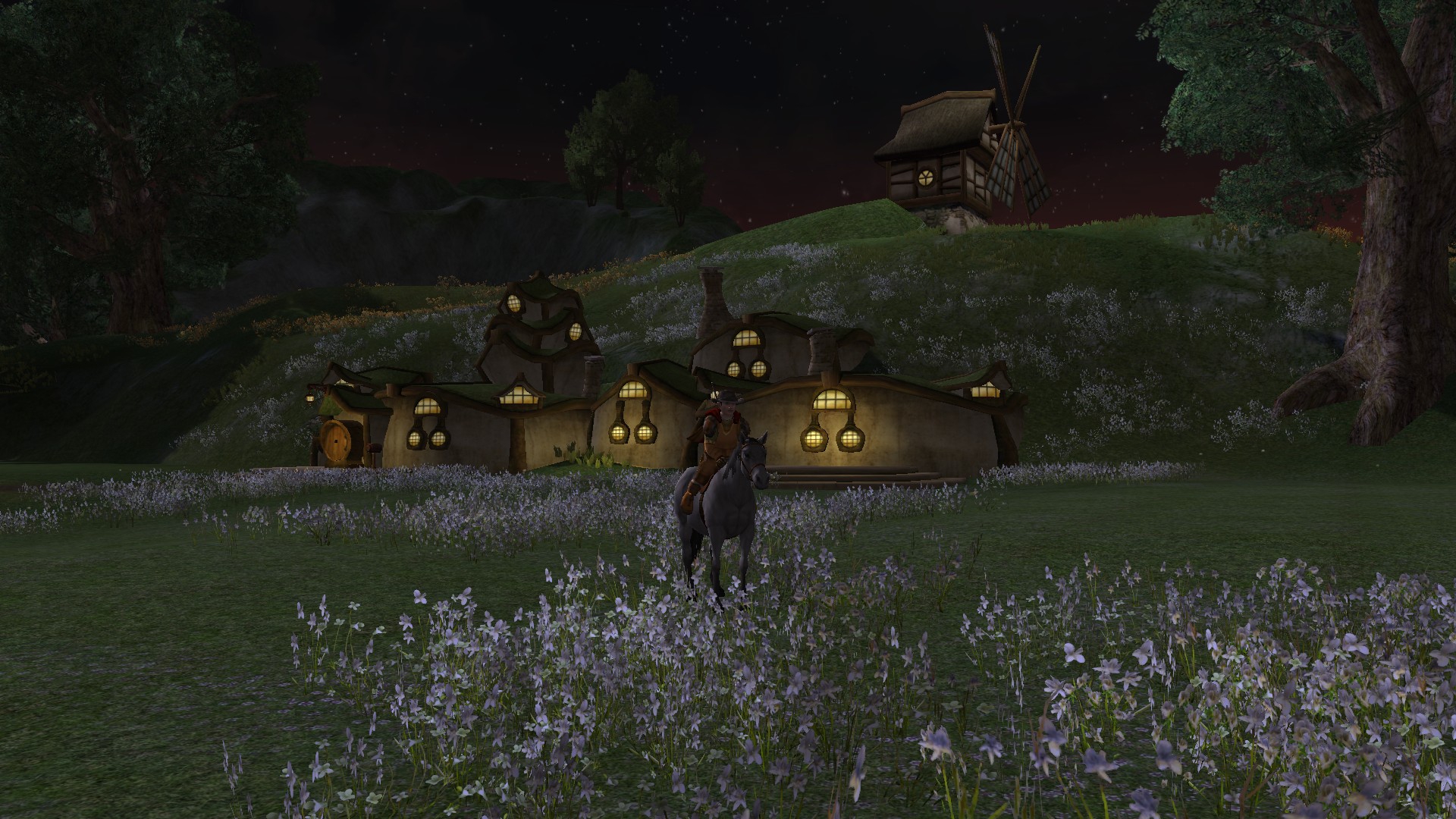Когда игра становится миром (игрой миром), в ней происходит то же самое, что и в реальности - в необходимости принять её бесконечность и что нельзя быть всем сразу (и уж тем более одновременно). Заглянул буквально на пару минут: - красотища; - свой домик в добрейшем, светлейшем, зелёнейшем Шире (две кровати, столы и лавки, книги, камин - что ещё нужно?); - небо; - вода; - дали вторую лошадку в красивом обмундировании; - красивая музыка, птицы поют, копыта стучат - мгновенное погружение
