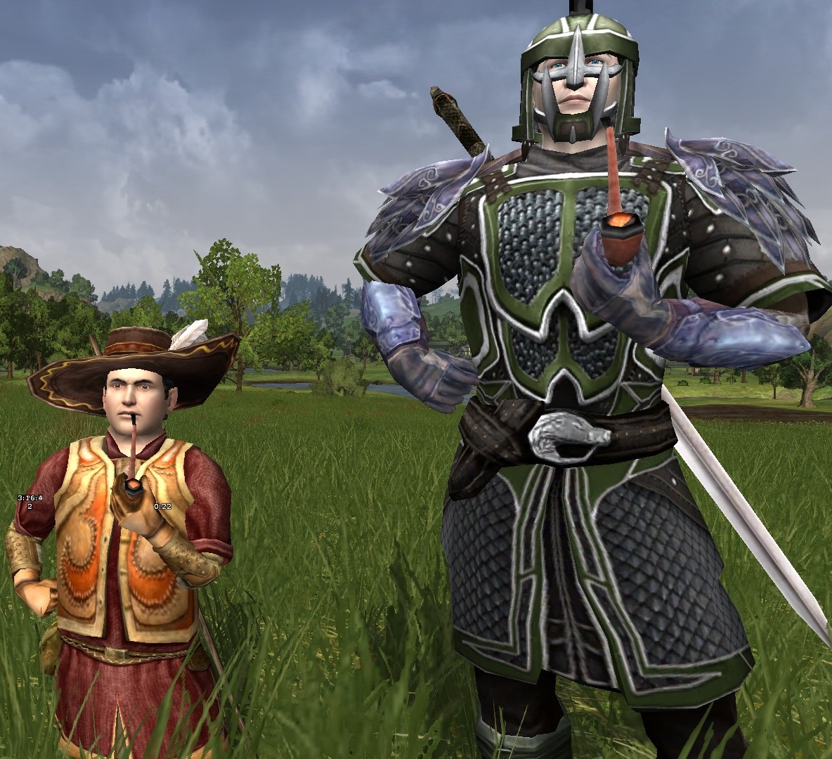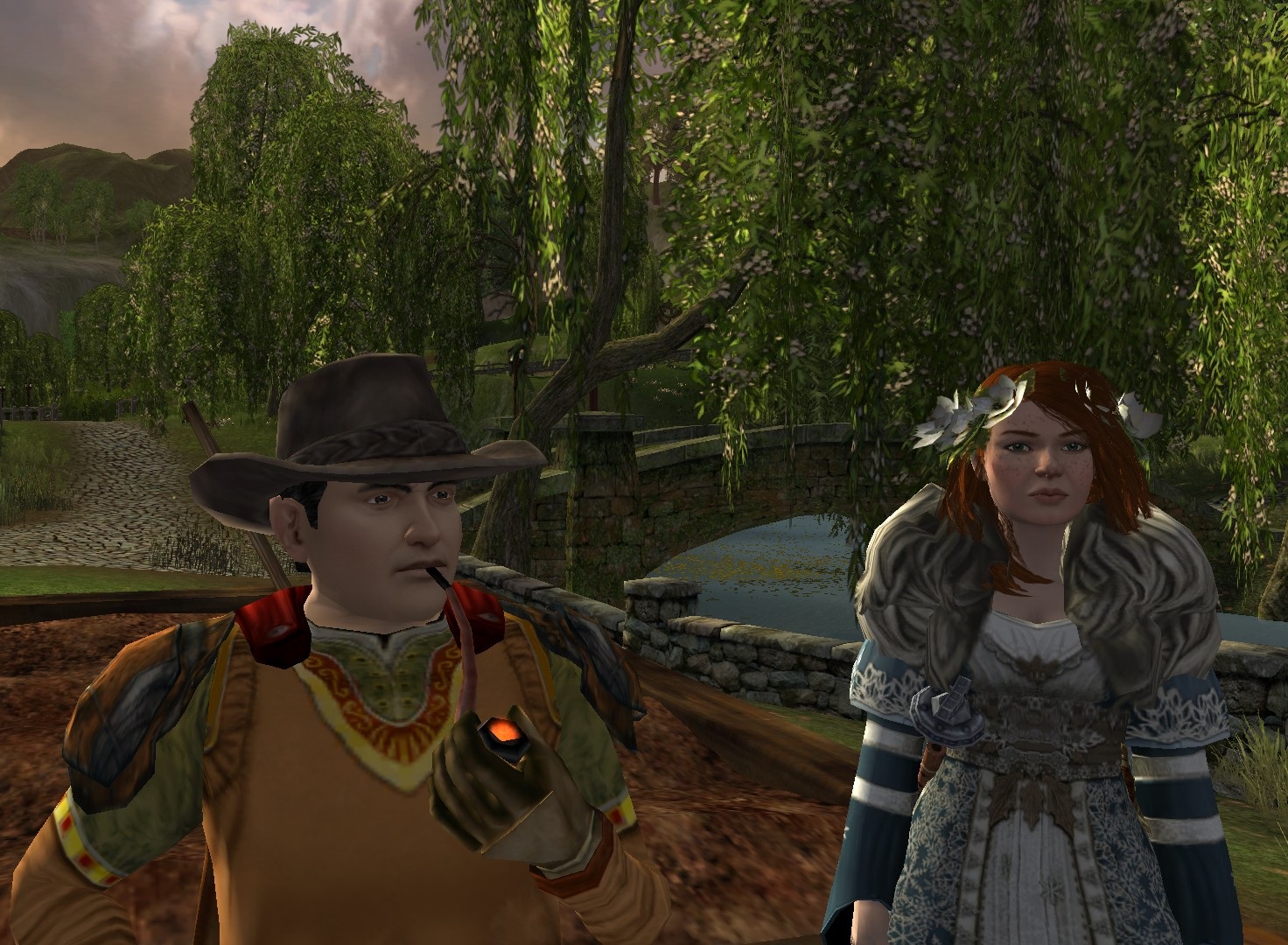 А ещё мы будем ещё раз поговорить о силе жанра, как здесь всё можно оживить и обыграть. Будучи участником содружества Old Road Company, я не стал частью the Каравана. Возникающий при этом элемент трагедии нужно обыгрывать не с точки зрения стыда ("Опять двойка") и прочего, а с точки зрения... какого-то даже принятия. Сам жанр дублирует жизнь, потому и совпадений много, само пространство приключений и психической жизни похожее. Главное в этом всём - верить, доверять, проваливаться в тот мир, считать важной и ценной каждую его деталь Совсем не обязательно, что мой хоббит (или даже "я-хоббит") отправится в какие-то опасные, по-настоящему опасные странствия. Или он сделает это позже? Не ясно. Но он именно такой. Однажды он встретил участников сообщества Old Road Company и они друг другу понравились. Смелые гномы, люди, эльфы звали его с собой, но он не пошёл. Не Караван, но Old Road Company! Друзья пишут письма, рассказывают о приключениях. Он немножко (или множко) такой домосед и приключения у него другие - с такими могучими врагами ему не совладать и в подземелье он ещё никогда не был. Но тут тоже своя жизнь, пусть порой и с примесью иронии. Например, сегодняшний день... Хоббитка такая "Я тут упражнялась в стрельбе из лука и какой-то зверь украл мою стрелу - иди найди". Хорошо, нашёл. Дык нет, ты иди ещё её отмой от грязи! А не сходила бы ты сама, мадам! Идёшь и моешь... Или "Смотрю, ты любишь приключения, а ещё умеешь плавать - посмотри, что за водопадами". Идёшь и смотришь - где-то ничего нет, а где-то находки. Потом проверяешь состояние мостов и рубишь деревья для их ремонта, затем ищешь старого подвыпившего Гиля (с ним всё хорошо) Вот так и протекает жизнь. Именно жизнь. Доверие к тому миру слишком велико, чтобы назвать это игрой, миром вымышленным, "нарисованным". Сколько ещё всего впереди. Лебедянь, Шир, Брин - мы совсем малость познакомились, но это самое-самое начало
