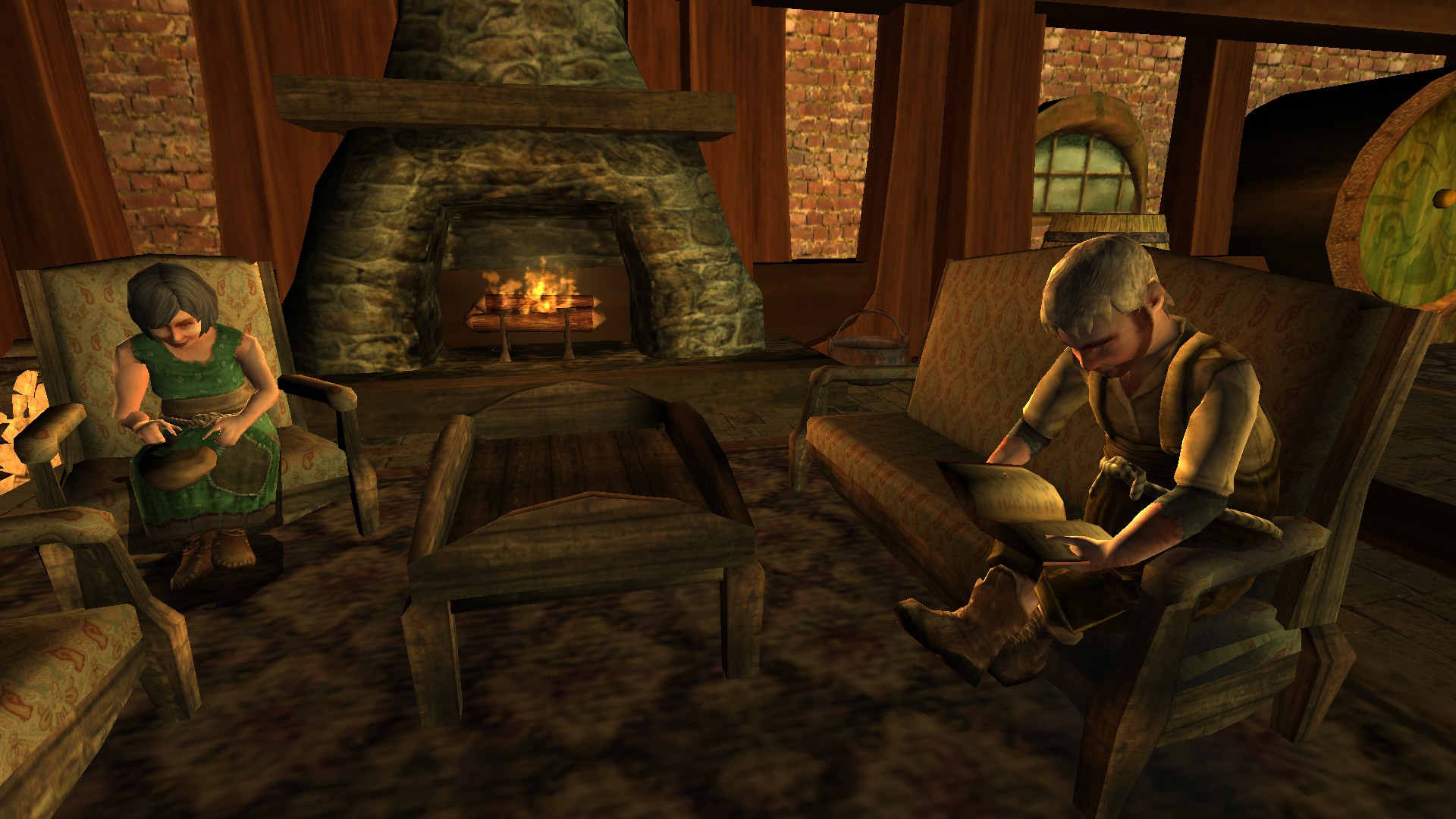 Тема статьи "Жестикуляция НПС в игре "Властелин колец""... Написать такое - не проблема (материала много: на страниц 10 размышлений) и благо. Какие же они живые, какие же интересные. Когда они стоят по одному - ты веришь, когда они стоят рядом - ты тоже веришь (именно так люди и стоят, когда стоят рядом, общаются), они говорят, активно жестикулируют - говорящий машет руками, слушающий чуть ли не кивает (или я уже сам дорисовываю, благо доверять миру так приятно) Две соседки общаются - одна машет руками и очень так естественно. Один стоит чистит лошадку, его знакомый что-то рассказывает - тоже жестикулирует