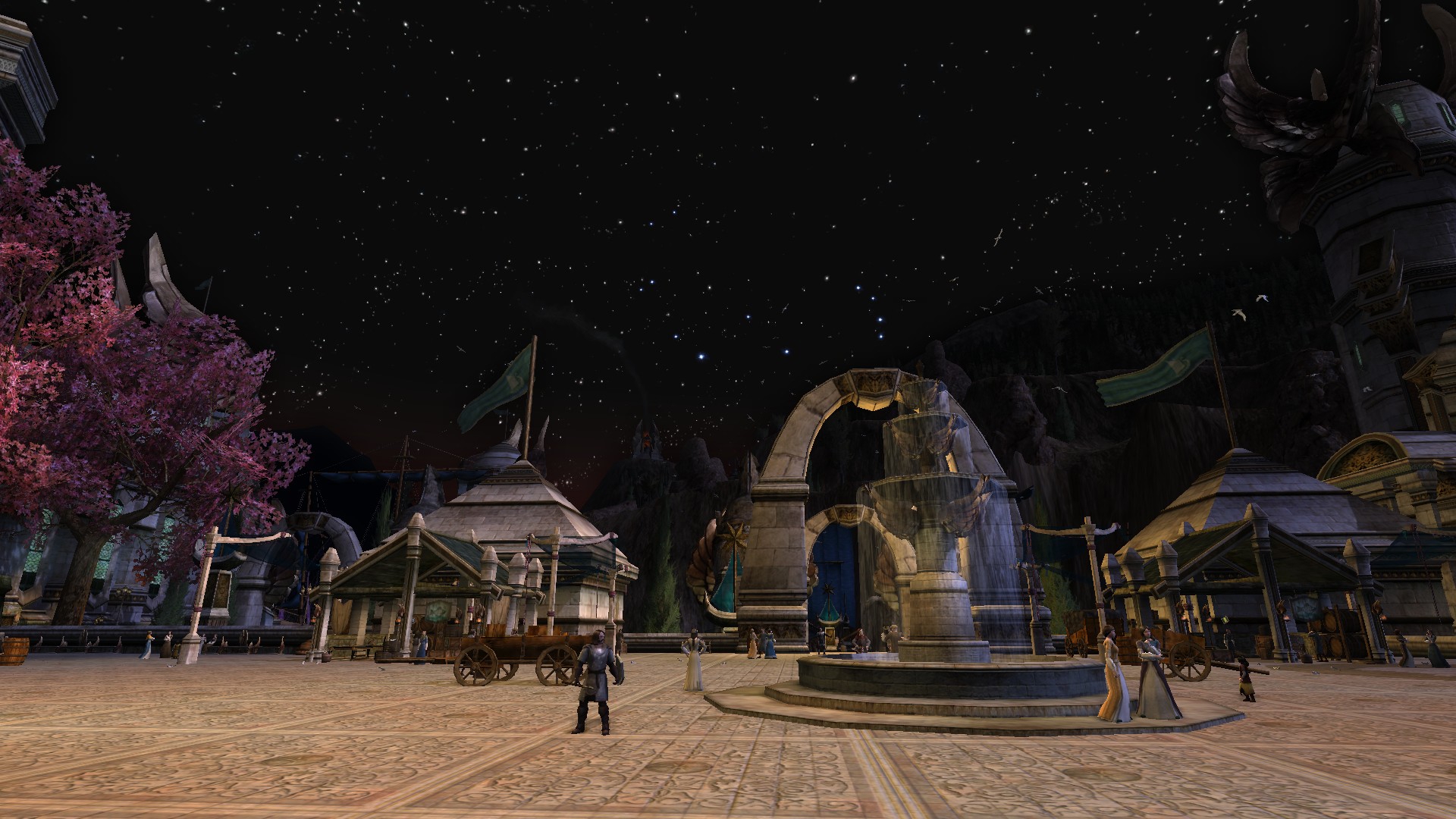 Что ж... Быстрое (мгновенное) перемещение - это что-то неизбежное, но, пожалуй, его дали слишком рано. В поселениях Шира стоит крутой мужик, отправляющий тебя мгновенно на большие расстояния. Так мы с медведем, болотным кочуном и орлом оказались у Врат Торина и в поселениях Чертогов Торина (красиво, масштабно). Не прошло и 10 минут, как мы отправились дальше и мгновенно попали в Гондор - на мыс Белфалас (красиво, масштабно, но за дом просят три телеги мифрила). Зато посмотрели на воду, как и госпожа Шевальрис на фотографиях выше. Вода - это хорошо. Это бодрид. Это свежо А вот телепортация в Минас Тирит была откровенным перебором, тем более что сама локация закрыта и ты явно "читеришь" таким перемещением. Всё-таки нужно сначала один раз добежать, затем быстро перемещаться, но ни разу не бывав - это перебор. Дабы не натворить дальнейших ошибок и не разрушить погружение, вернулись в родные Шир и Бри. Дальше намечается поход в могильники