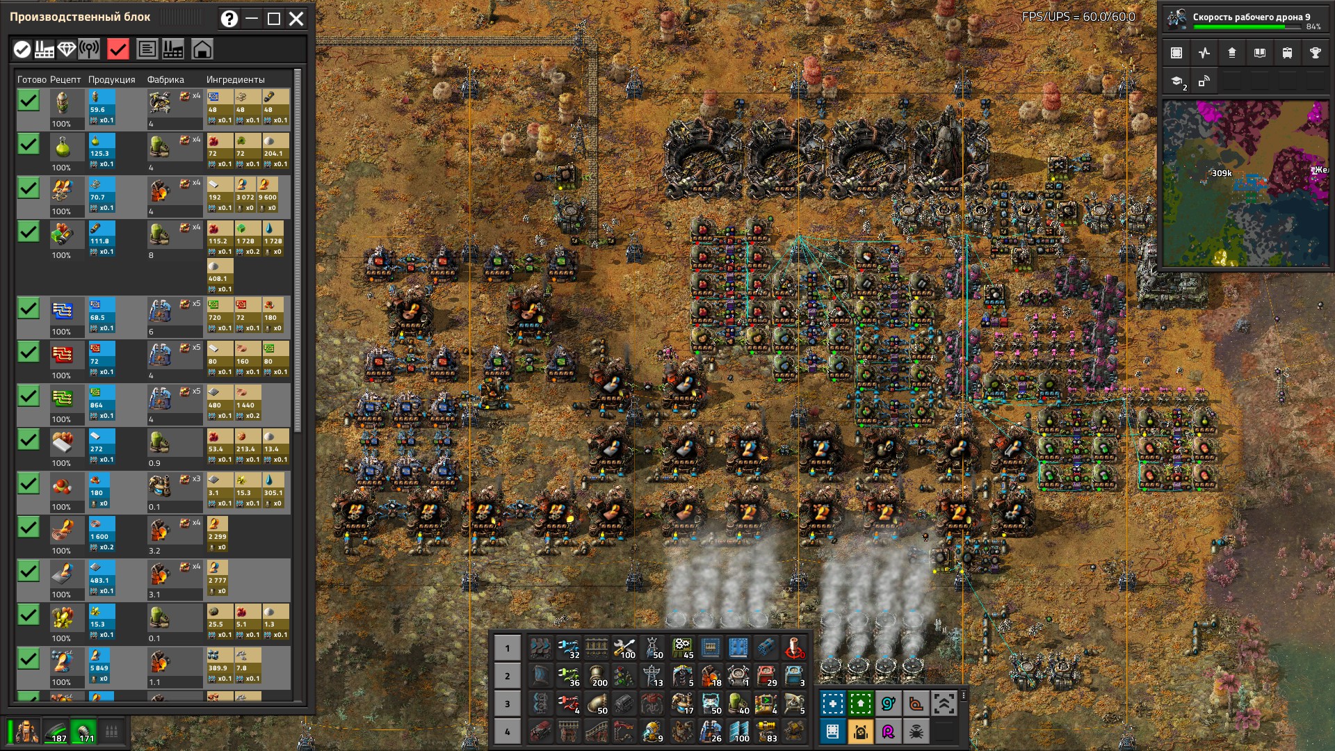 >>50471774 > обосравшегося инженера > 80 эволюции Ты там до 80 эволюции науку руками крафтил прячась в кустах? Так играть просто невозможно, даже для первый раз инженера. > зачем балансировать нефтяные заводы > НЕПРАВИЛЬНО Если не строить переработку тяжелой и легкой нефти в газ, то нефтяные заводы забьют любые гигасклады тяжелой и легкой нефтью и производство встанет. Если не ограничить переработку, то не будет тяжелой и легкой нефти для производства смазки и твёрдого топлива.