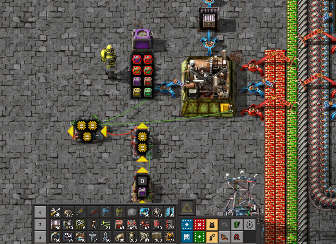 пытаюсь придумать как в смелтер запихнуть 3 предмета при этом используя длинный инсертер только для одного предмета и будучи ограниченным красными белтами... на вывод длинный инсертер наверное тоже хуйня