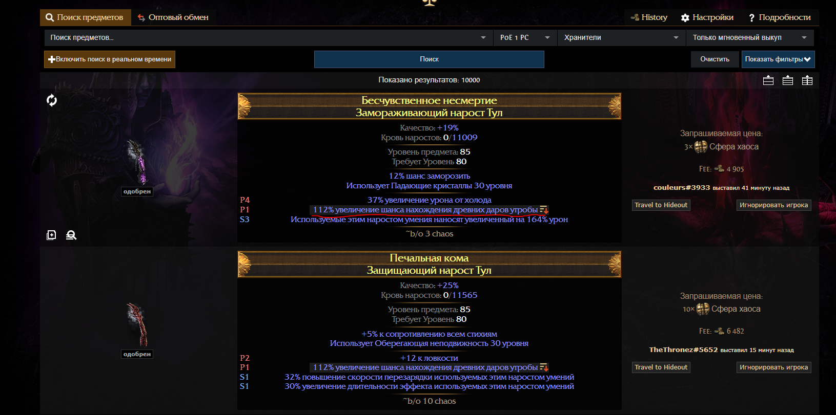 в этой лиге оч кайфово зайти на трейд вбить нужную карту исключить все неприятные моды выставить потолок цены а 5с и ебануть квантити 110+ тфт нах не нужен 8 модки с удобными модами считай бесплатно а не как раньше 10-12 с + жди пока дебил ответит