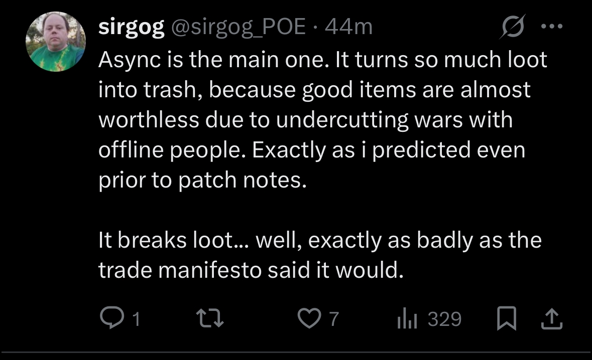 вообще чтоб я считаю что пое должны были сделать как в ммо, чтоб на каждую механику был свой класс, что на хил хилер, на крафт там кузнец какой нибудбь, на танчить танк, на дамаг дамагер и тд, чтобы поешеры зависили друг от друга и играли вместе. а щас в пое есть только 2 класса, это дамаге и ауработ/курсабот. они как будто пытались воссоздать эту классовую систему из ммо, но повесили все эти классы на одного игрока, из-за этого ни рыба ни мясо. вообще в пое дохуя механик из ммо взято, но это заметит только тот кто в ммо играл, например в линейдж 2