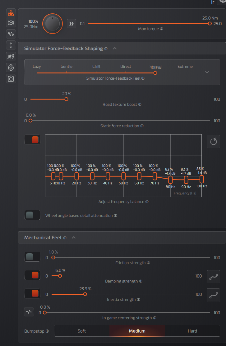 >>50617013 Какой руль? На твоём пике всё эффекты, то есть, тупо коэффициенты на «реальные» силы, действующие на колесо. И да, поставь CSP же, кто в вонилу играет в 2025.