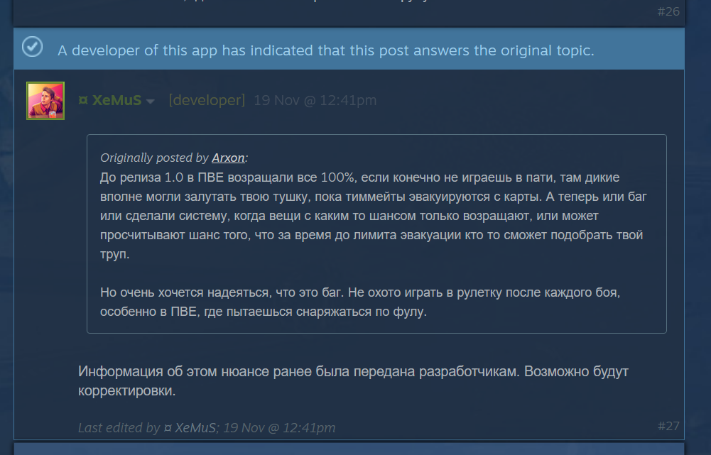 >>50474824 Эта механика работала, если Тарков фиксировано по времени искал и загружался, условно ты знаешь что игру найдёт за минуту, потом загрузка три минуты итого четыре минуты тебе на сбор. Но, проблема в том что фиксированного тайминга просто нет, когда час пик и людей много происходит не хватка серверов у тебя поиск идёт по 10 минут, когда утро понедельника как пример, то людей и поиск снова занимает кучу времени, только уже не сервера, а игроков. Решить ситуацию в первом случае можно увлечением серверной мощности, а во втором дать строго ограничить время поиска игроков до минуты, не нашло, значит будешь один в рейде.