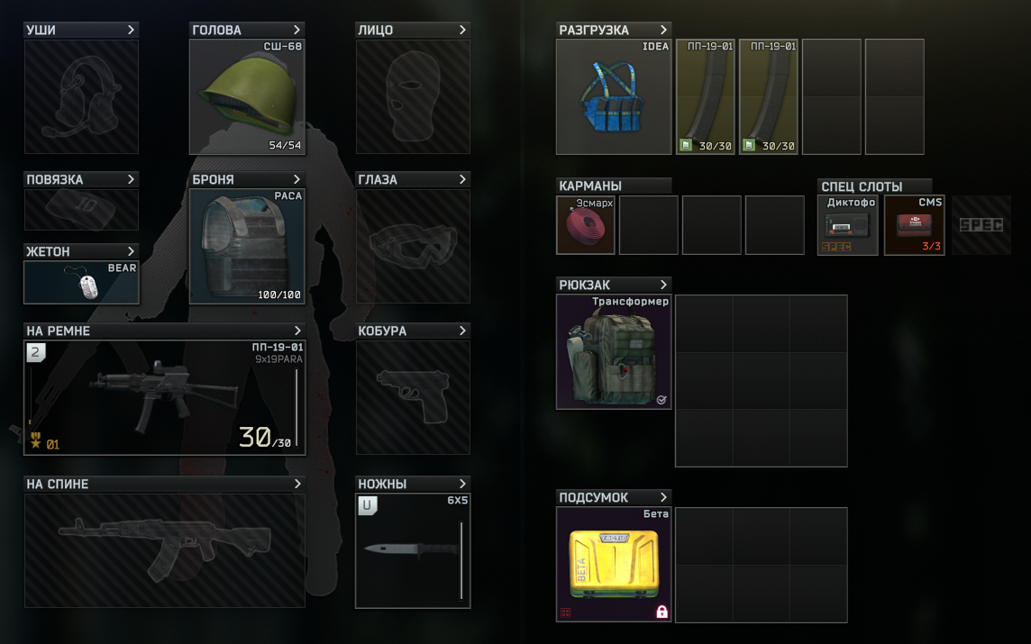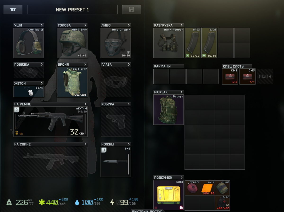 >>50468541 Отсутствие наушников = инстасмерть, лучше вообще не выходить в рейд, чем выходить без ушей. Любой армор ниже 4 - в мусорку, он не работает против игроков, только против диких, и то не всех. Любой ствол без авторежима огня - в мусоркую Любой патрон ниже 25 пробоя - в мусорку. Жопу набиваешь аптечками, бинтами, шинами, и обезболом. Весь шмот, которые не черный, и не зеленый - в муосрку, тебя видно за полкилометра. Рюкзак на ЧВК на старте рейда - не нужен, в мусорку. Хороший разгруз вместит больше чем дерьмовый рюкзак. Диктофон - выкинь нахер. Ну и патриков набери чисто в карман. Когда в магазах закончатся, как воевать будешь?