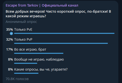 >>50474760 Никакой дихотомии. Раньше выбора не было: играй пвп или иди нахуй. Потом появился спт - играй его, но с запозданием по контенту или пвп. Теперь есть пвп, пве и спт. Спт отпал, т.к. сюжетку там ждать можно вечность. Пвп не устраивает в техническом плане, остается пве