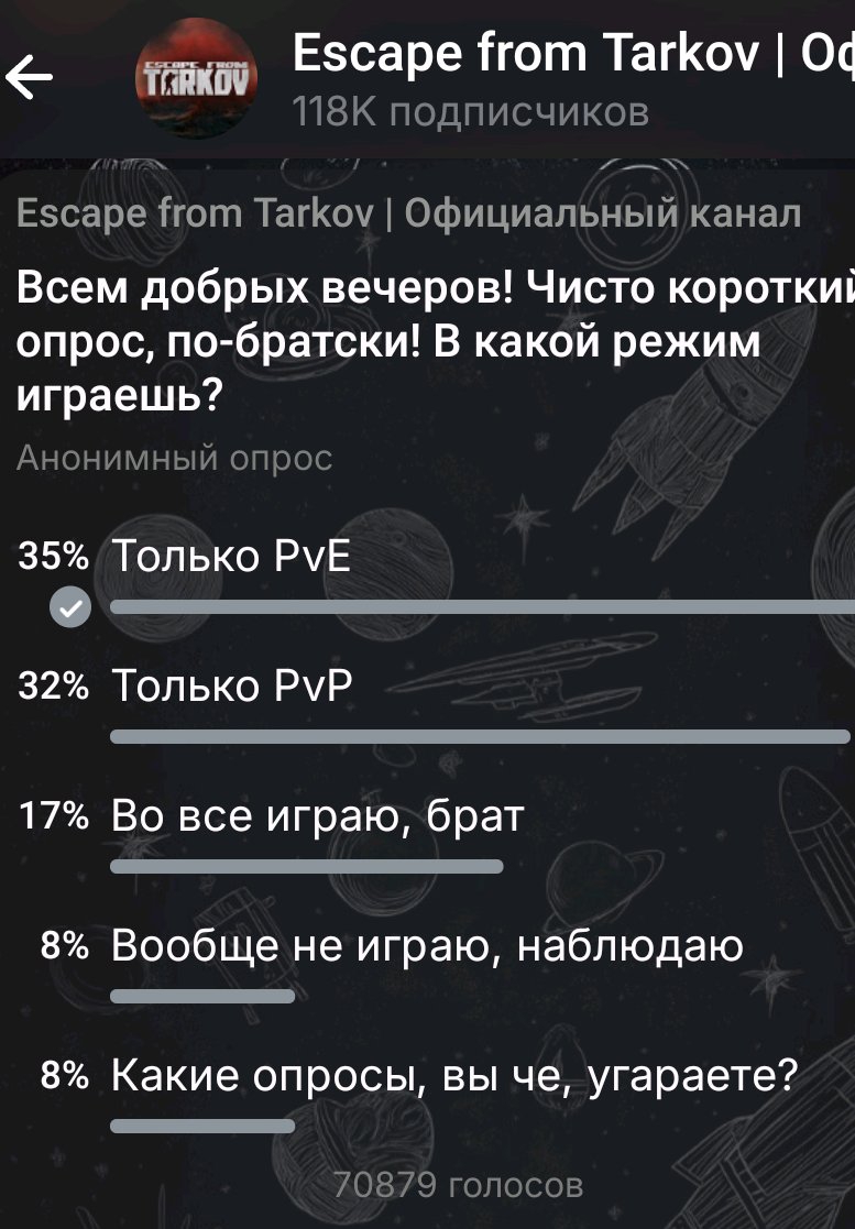 Отчасти поэтому все сервера лежат в начале вайпа, 1 пве господин занимает карту на сервере в которой могли бы 20 пвп игроков бегать.