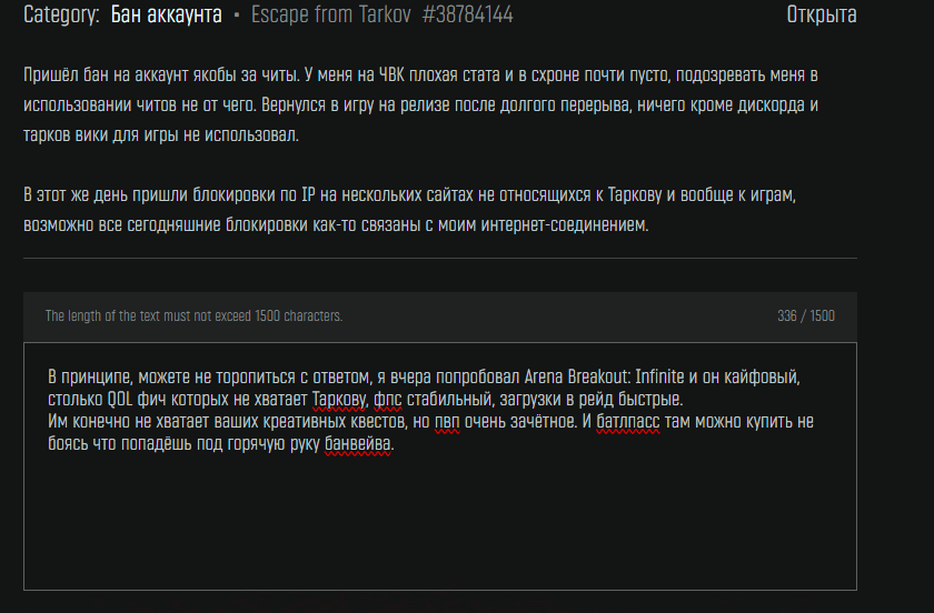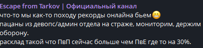 >>50474326 Бля чел, это просто обычный день в таркове, а вот то что пельменный барон запретил ваще торговать почти всем в игре пока у тебя нет 20 лвл, вот это реально пиздец. Некуда складывать лут уже, продавать его нельзя. на диком бегать в рейд соотв почти нет смысла, как и лутать что то кроме пушек или гира за чвк.