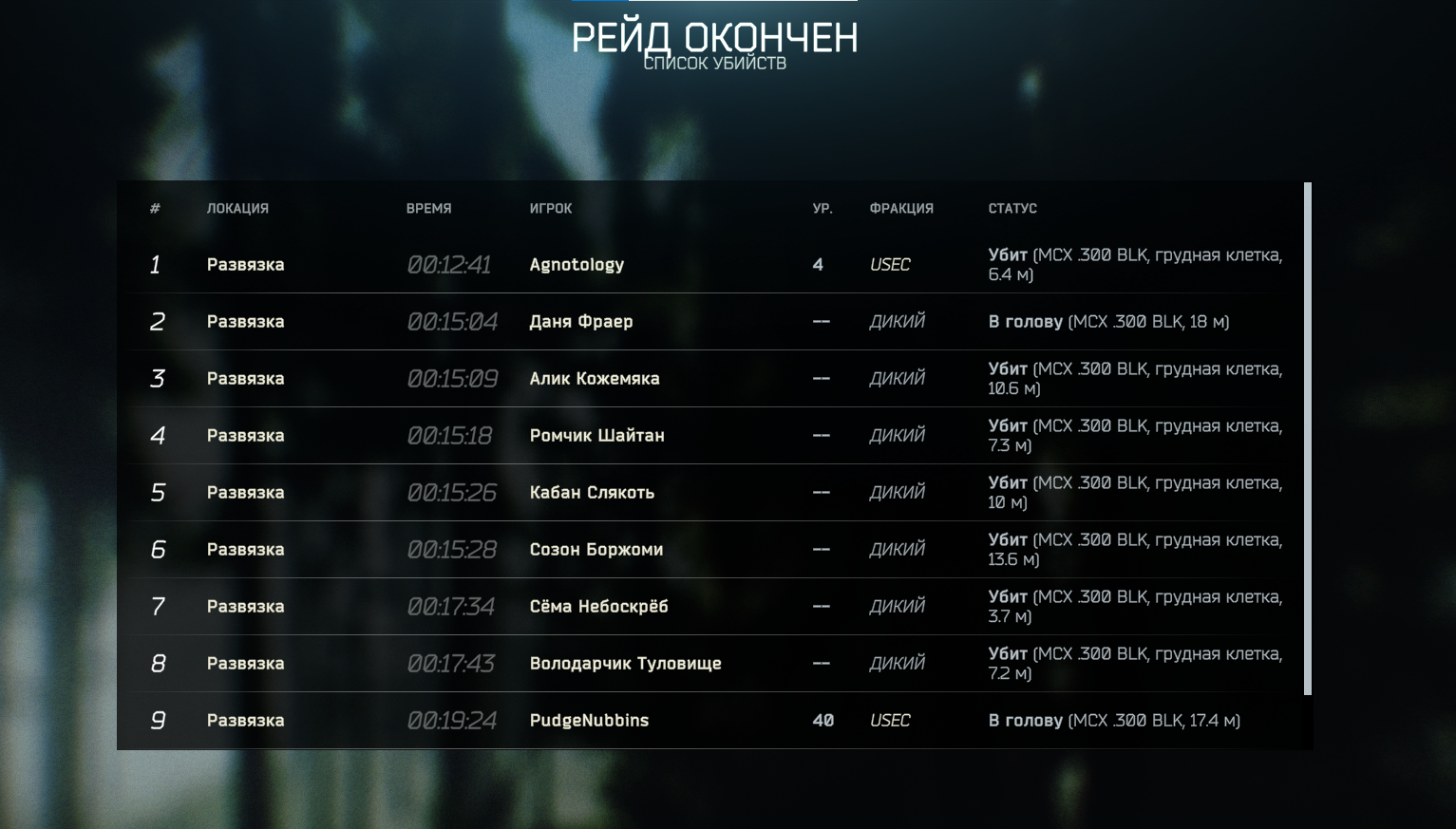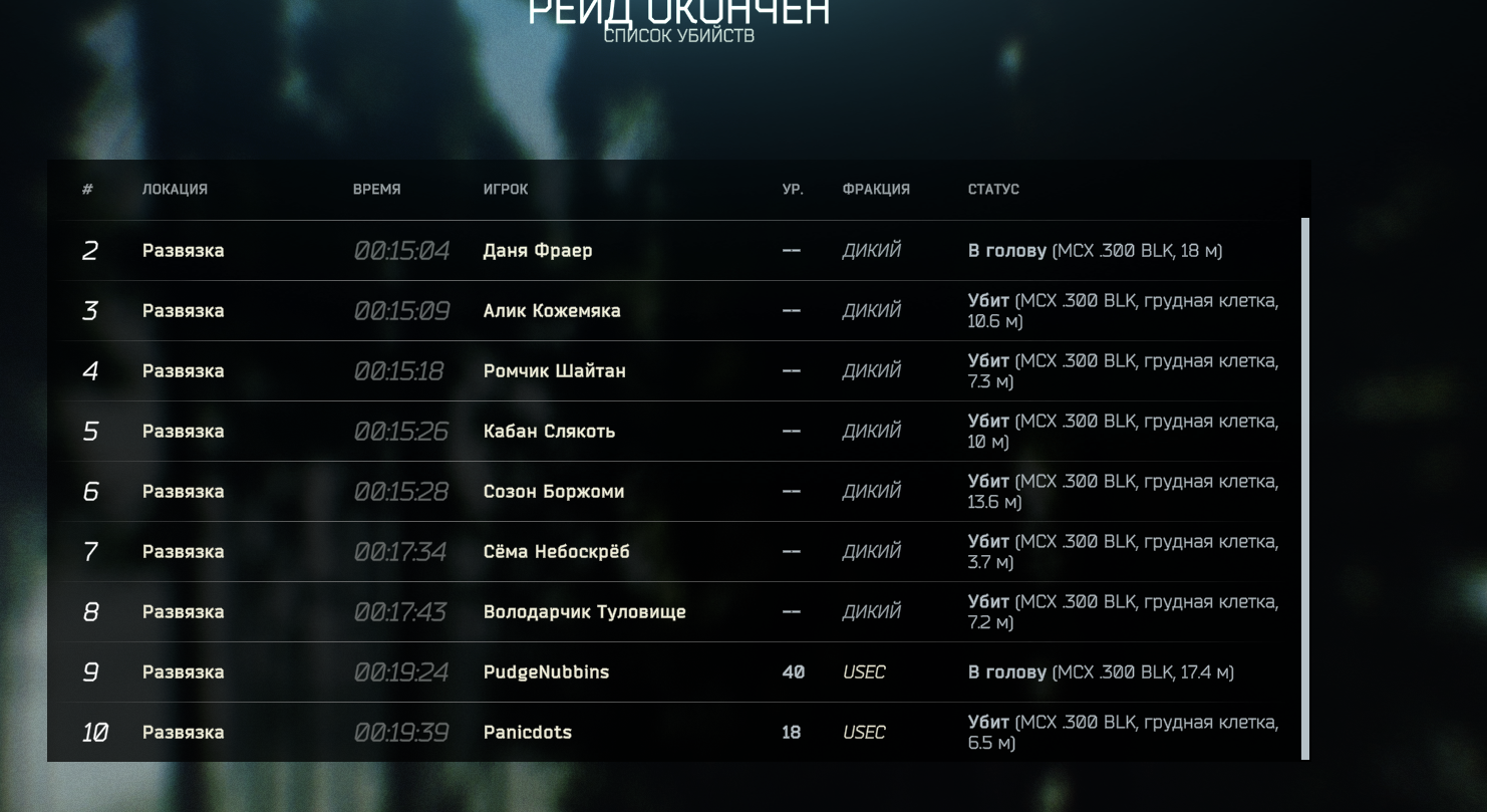 >>50468519 >Сходил в рейд за дикого >ебнул босс >во второй рейд ебнул другой дикий игрок >потом закинуло за 5 минут до конца, вынес сайгу и разгрузку на 15к максимум