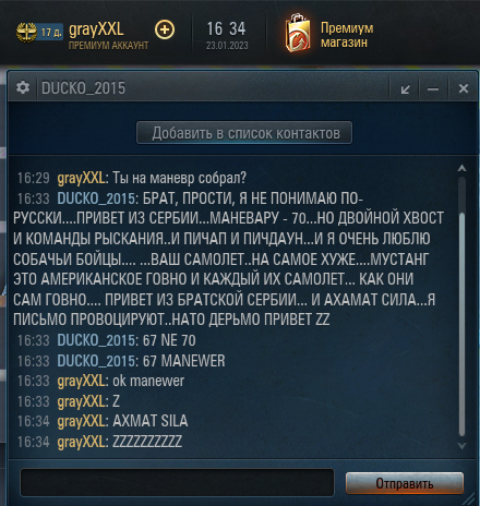 >>50471663 >Тут типа заскамили на 5к гойды так ещё и 10 миллионов серы отобрали Ну смотри. Я создал акк в октябре, по инвайту мне накинули 7500 голды и около 10М серы. За 39 рублей я купил еще 2500 голды, плюс наиграл 5-7М серы. Т. е. я взял ХОТЬ КАЛ, НО БЕСПЛАТНО, что полностью укладывается в ментальный концепт НАЦИОНАЛЬНОЙ ИГРЫ В ТАНКИ.