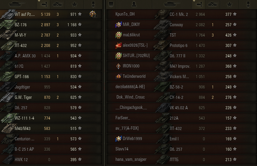 Бля хуй знает я на нём страдаю пиздец не могу исправить стату в 47 процентов которая была набита 5 лет назад, на топах щас у меня 56 - 57, ультра ватная хуйня без динамики, плохой стабой и нищей альфой, так еще и фул картон, играть одно мучение, вообще не знаю куда себя деть на карте. Пушка косая хотя 0.3 сука, так еще и эти подколы ссаные. Так мало того как будто на этом ебучем танке тебе всегда дают ультра нубасов в команду и ты постоянно проёбываешь.