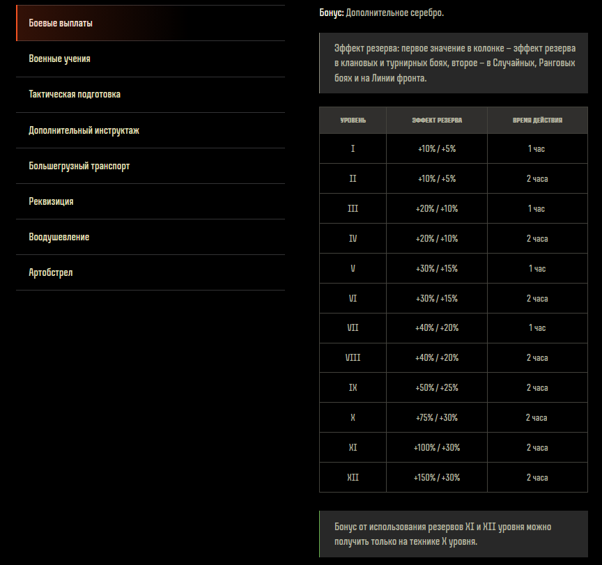 >закидывается резерв (он работает в укрепах Не работает в клановых боях.