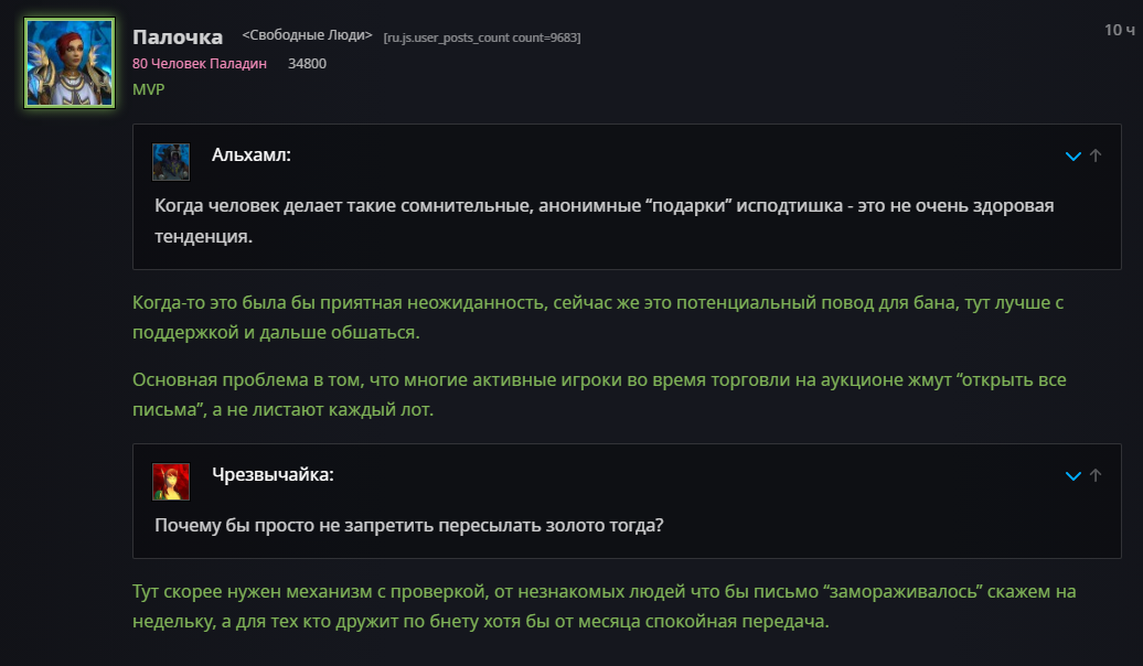 Боги, каким же Великим Вождём была наша госпожа Силвана Ветрокрылая, если даже после её смерти, через года, её продолжают помнить и спорить о её вкладе в будущее Азерота...