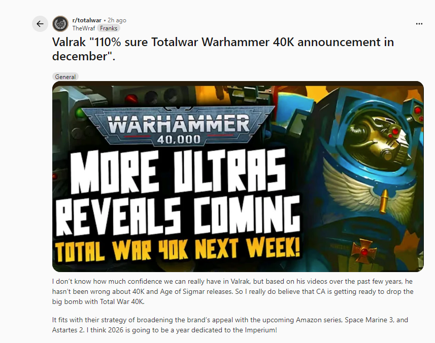 >>50498628 очевидно за хайэльфов, после двойки их вообще не трогали толком + возможно что-то с инфлюенсом подкрутят, потому что ща он однобокий что пиздец. им надо что-то хотя бы похожим на манипуляции тзинча сделать, хотя ничего скорее всего не сделают и выйдет пресная хуйня из нового лорда юнитов и ничего больше, судя по стримам