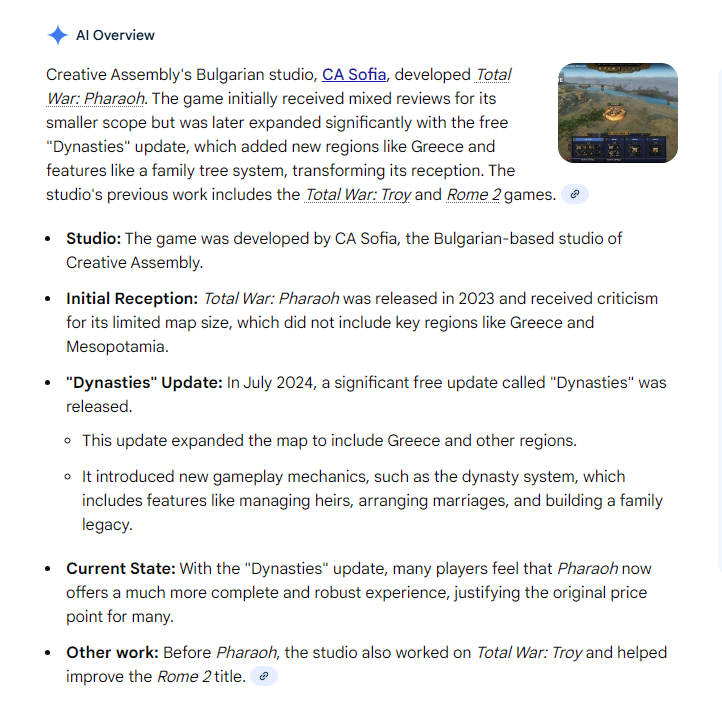 >>50502332 >>50502346 >>50502350 >>50502257 >>50502331 Ну вообще у неё со со старта холодные отношения со Сранцем и самая низкая лояльность калфюрста по его механике. А учитывая что ИИшки выбирают в ивентах абсолютно рандомно - скорее всего лояльность Кекспетки как калфюрста быстро упала до 0 и произошел скрипт по которому надо или заплатить голду/престиж или будет война. И скорее всего ИИшка на Сранце просто выбрал войну. Я не уверен, прожимает ли бот кнопки указов потому-что дипломатические отношения за престиж он точно не улучшает, но ивентовые события у него случаются точно и влияют на лояльность калфюрстов, а значит скриптовое отделение происходит тоже.