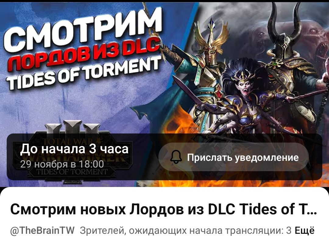 Warhammer 3 Анонсировано ДЛС со Слаанешем: https://www.youtube.com/watch?v=BsEX51KP6U8 1) Показали лордов Слаанеш (Дечала Отверженная), Норски (Саул Вероломный) и высших эльфов (Аислинн). Бесплатный лорд для всех - Маска (Слаанеш). Название длс - Tides of Torments. Выход длс уже дважды задерживается, СА мамой клянется выпустить наконец 4 декабря. 2) Для тех, кто вкатывается после долгого перерыва в игру - патч 6.2 был ОГРОМНЫМ по размерам (аж 55 гигов) и перелопатил все файлы игры, так что придётся потерпеть долгую закачку и установку. Зато после него размер игры снизился примерно на четверть и загрузки в самой игре станут побыстрее. 3) Вышел хотфикс 6.3.4, который должен был пофиксить стоящие на месте стаки у ботов и многое другое.