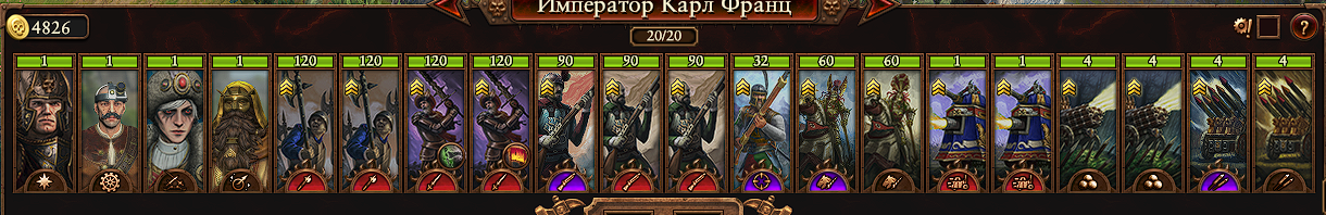Как думаете, нормальный стак для игры примерно после мид гейма когда вся ну или почти вся Империя под твоим контролем? Долго думал что тут заменить, была мысль вместо рейксгвардии взять демигрифов, но я нанял их только в 1 армию куда посадил Теодора Брюкнера т.к. он разгоняет их. А Карлу решил оставить рейксвагрдейцев, а то нахуй я строил эту залупу в Альтдорфе, да и сам Карл их чуток разгоняет.