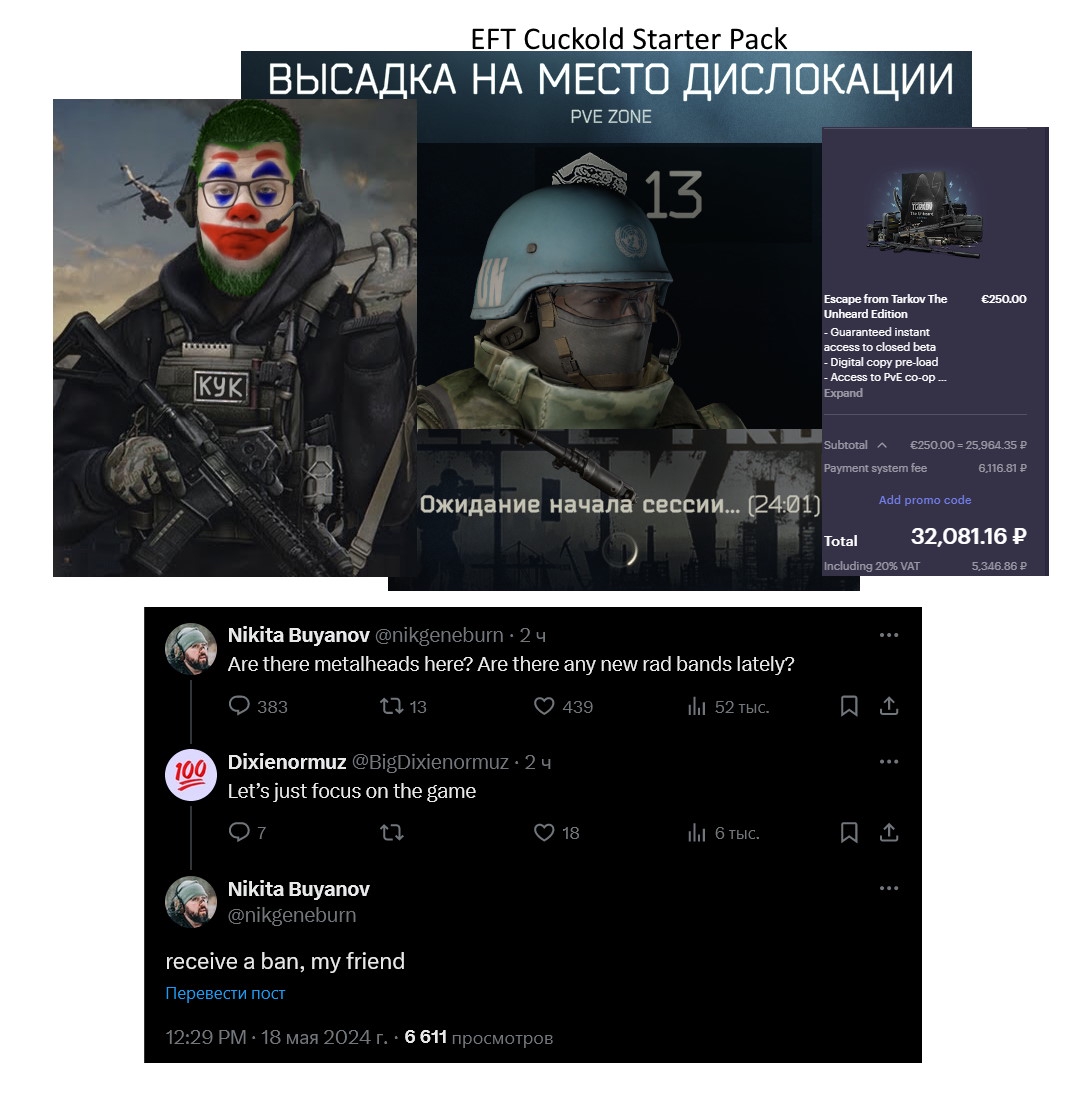 Было любопытно, что там за концовки сочинил Буянов и контора. Концовки впечатлили... Впечатлили своей отсосностью. Я посмотрел два полных прохождения терминала: от самого первого Tigz'а и от AlexPerch, оба примерно по часу возились. Удивился, что Буянов умудрился заспойлерить концовку в "Рейде" и на всех выставках (хотя последнее — не удивительно — у него просто не было ничего нового). Удивился, что разработчики, умудрились сделать катсцены так плохо: какие-то нелепые жёлтые человечки (первый пик), вечно пропадающие ноги ГГ, падение крана, которое было сделано только ради падения крана, но его всё-равно все проглядели, потому что он падает в тот момент, когда игроку нужно искать оружие. Удивился, что левелдизайн терминала так устроен, что Арсенал проходится максимально нелепо из-за того, всё сделано для того, чтобы игрок не смог нормально выйти из помещения, пока не убьёт орду диких и блэк дивижн, тупящих в коридоре у открытой двери, это что, на тесте не выявилось? На кой-то чёрт добавили Киллу на Терминал... это вообще кринж. На 42-й минуте прохождения AlexPerch я вообще офигел, потому что там бот блэк дивижн ТУПО НАЧАЛ СТРЕЛЯТЬ ПО СТРИМЕРУ СКВОЗЬ ЗДАНИЕ... Это на релизе... 10 лет игре... Ну и финалочка, самое позорное из того, что могло случиться с разработчиками, которые решили отмечать всех тех, кто самым первым открыл одну из концовок. Когда AlexPerch дошёл до лодки... Таймер на выход не запустился, время рейда тупо вышло. Когда стример понял, что концовки не будет, он просто встал и вышел из-за своего стола. очень цепляющие, драматичные кадры. Это просто легендарный позор БСГ. Как жаль, что об этом позоре никто не говорит, а карликам норм, хавают. Про сюжет концовок вообще смешно говорить: его тупо нет. Концовка Tigz'а: он поплыл на лодочке, город взорвался; Концовка Tsuginogi (самая нелепая): он вооружённый вошёл на лодку, к нему зашёл капитан и попытался застрелить, но у персонажа УЖЕ ПРОПАЛО ОРУЖИЕ ДЛЯ САМОЗАЩИТЫ... Но таки капитана убили, после того, как он доебался до ГГ, и от того, что солдаты и так ПЛАНИРОВАЛИ его убить, но ради "сюжета" дали ему напасть на ГГ становится только нелепее... А потом Тарков взрывается; Концовку AlexPerch просто не показали... Ну как, пацаны, промокодик уже ввели? Как раз новый подвезли, чтобы карлики не шелестели: GIMMEANALLUBE.