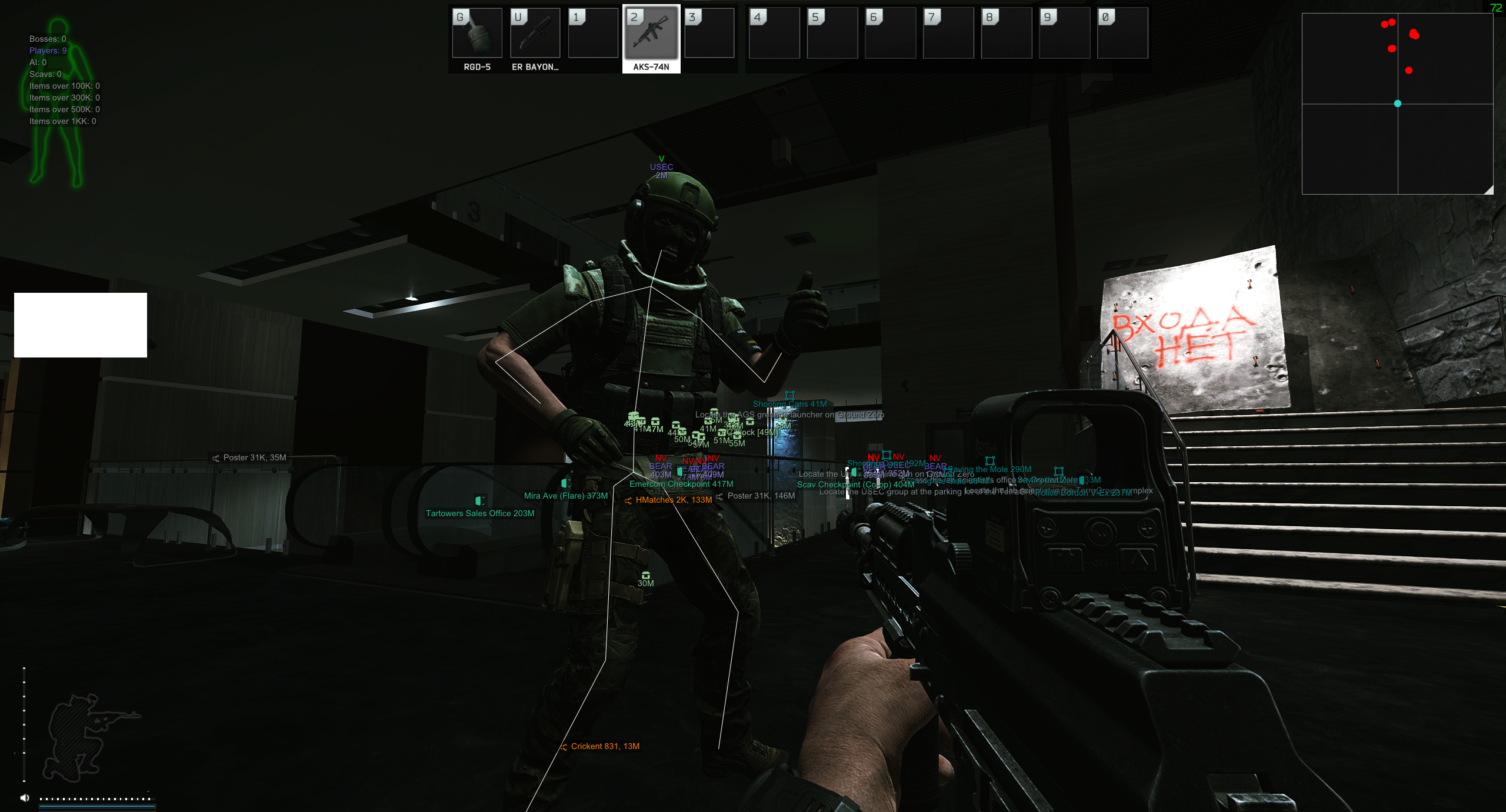 >>50485859 Всё включи для квестов до ~20лвл есть в бартерах. Внимательно смотри что медичка, егерь, миротворец продают. И для многих ключей в прошлом вайпе добавили статические спавны - например тот же ключ от коттеджа всегда спавнится в одной из 4 точек, гарантированно.