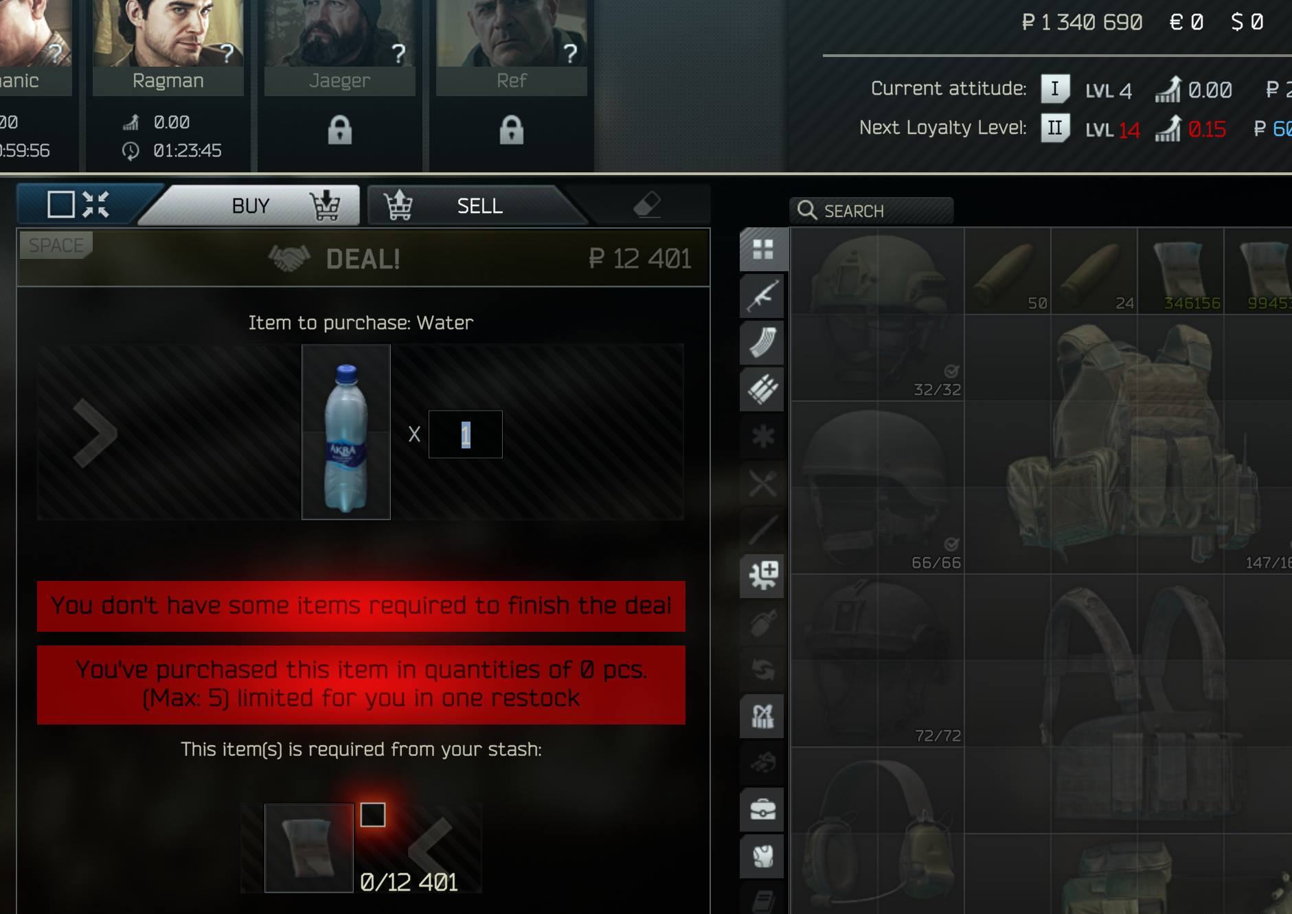 >>50477363 По-хорошему трейдеров вообще убрать нахуй, т.к. игра про то что ты в охваченной гражданской войной стране с риском для жизни добываешь необходимое для жизни барахло во время вылазок. И тут ты такой "Та ну нахуй, не пойду никуда, просто у Эльвиры все эти ключи ебаные куплю..."