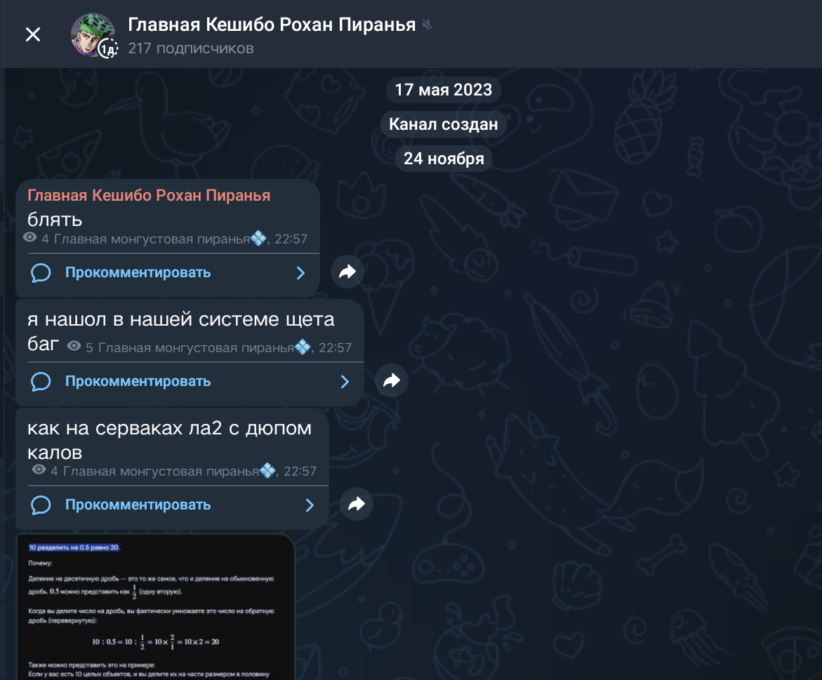 а че с аренычем случилось он исекайнулся в астрал навсегда толького его чат остался а група на 200 людей из подписок исчезла и чат где пересылал все с паблика потер мне страшно ребят