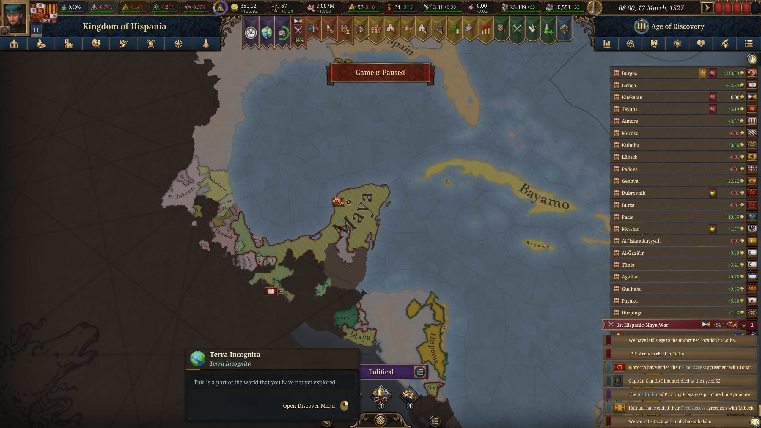 Ну короче доиграл я первую партию в уг. За ацтеков. Какой же пиздец. Чем больше красишь, тем сложнее сбивать обреченность, а если ее набрать больше 10, то нахуй все исследования в религии стопаются. Но чем ты больше, тем быстрее она капает, а рабы только 15 сбивают. И их еще надо наловить. Нет никаких технологий. Нет рынков, кроме твоего. Ебанутый бот спамит законами унии(как оттуда сбежать?) На империю надо больше провок, чем было ирл у ацтеков. Плохо сделали, пусть переделывают.