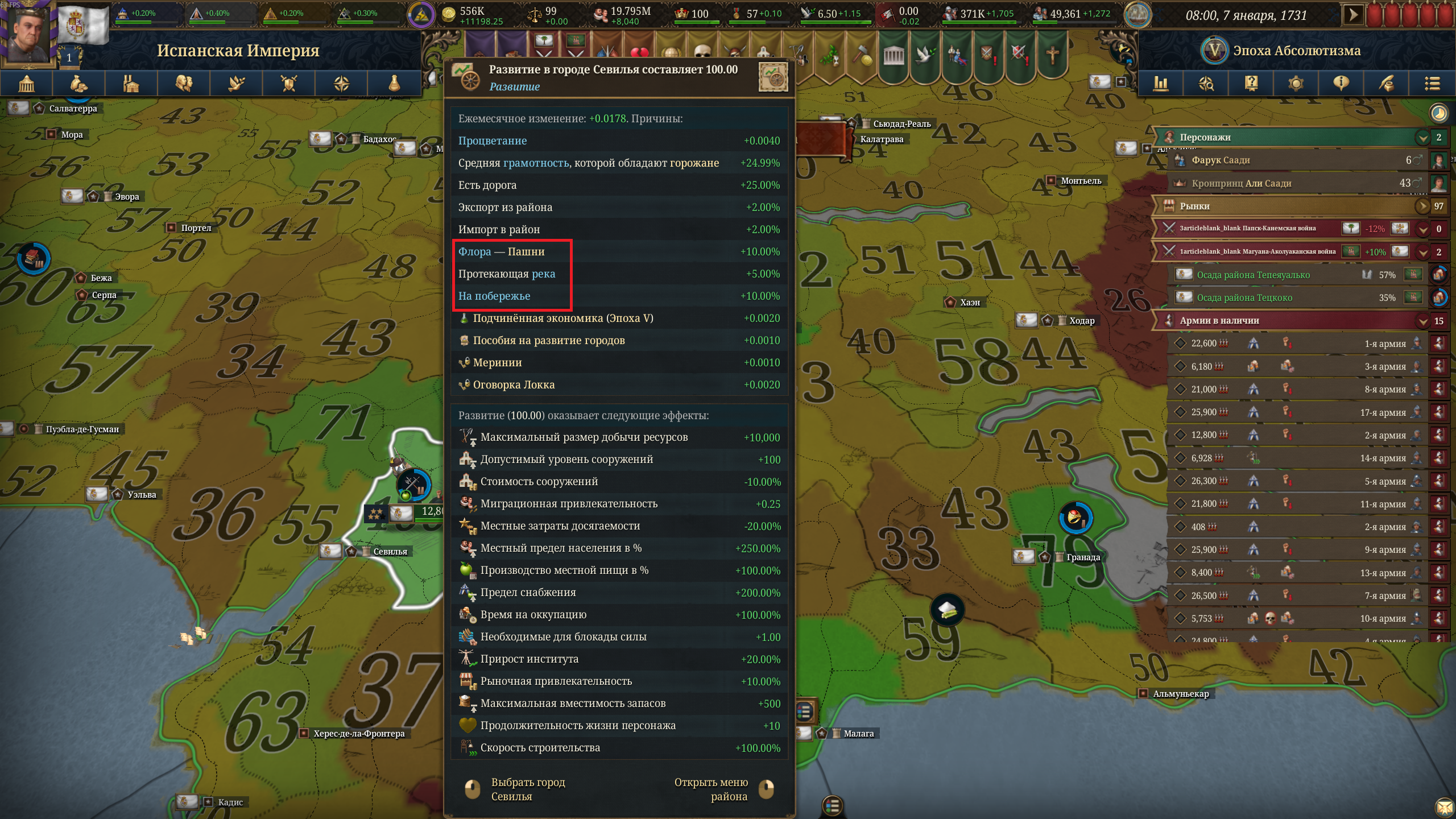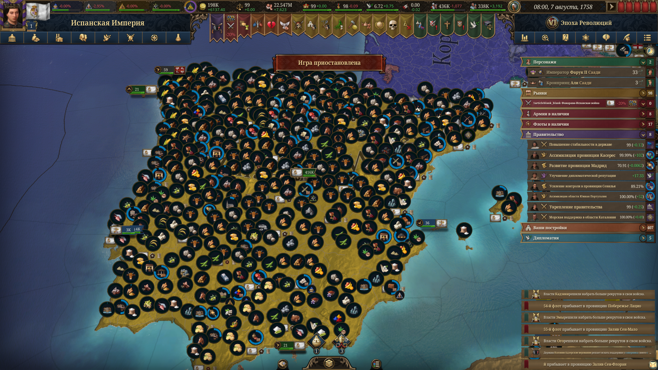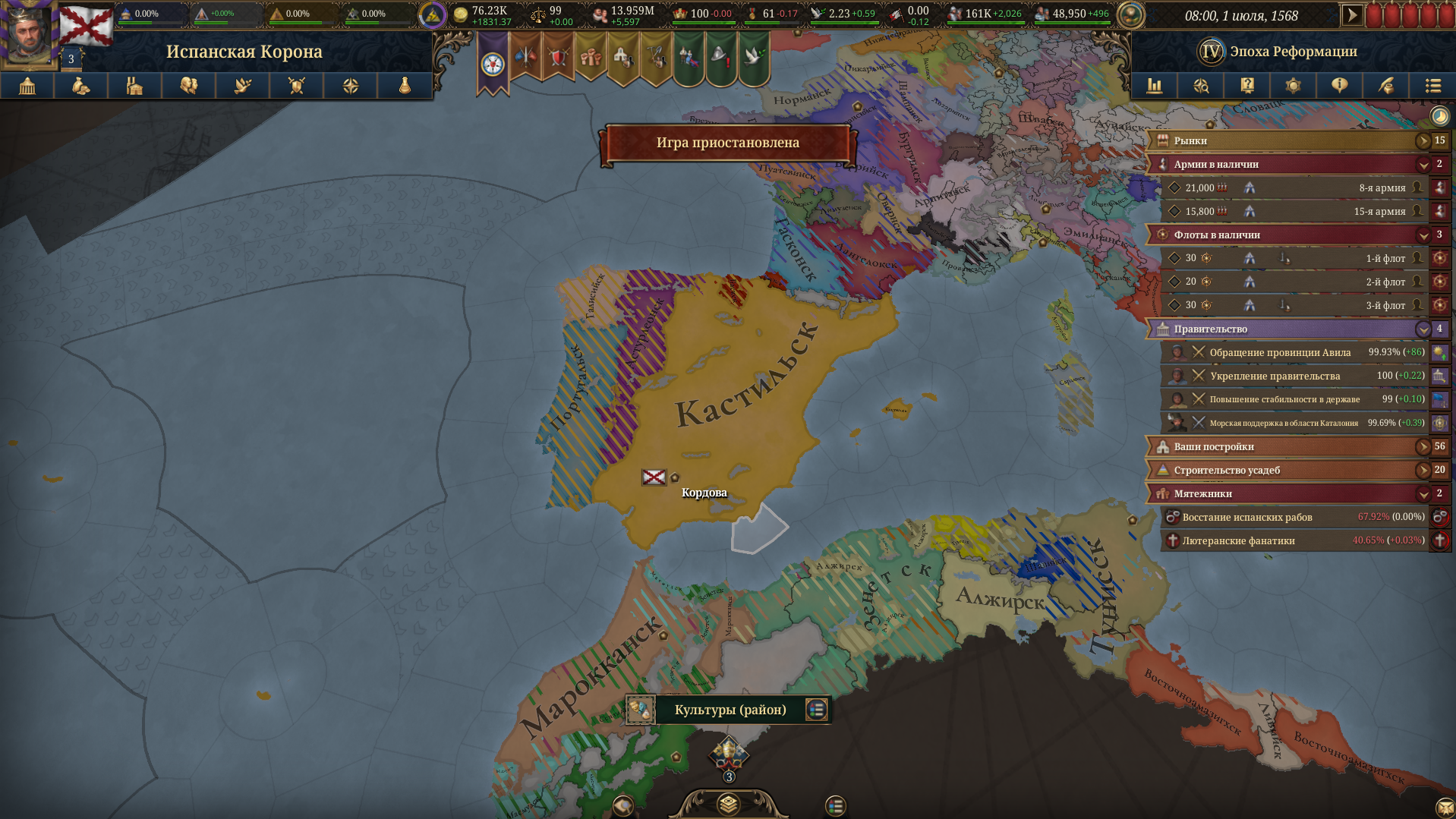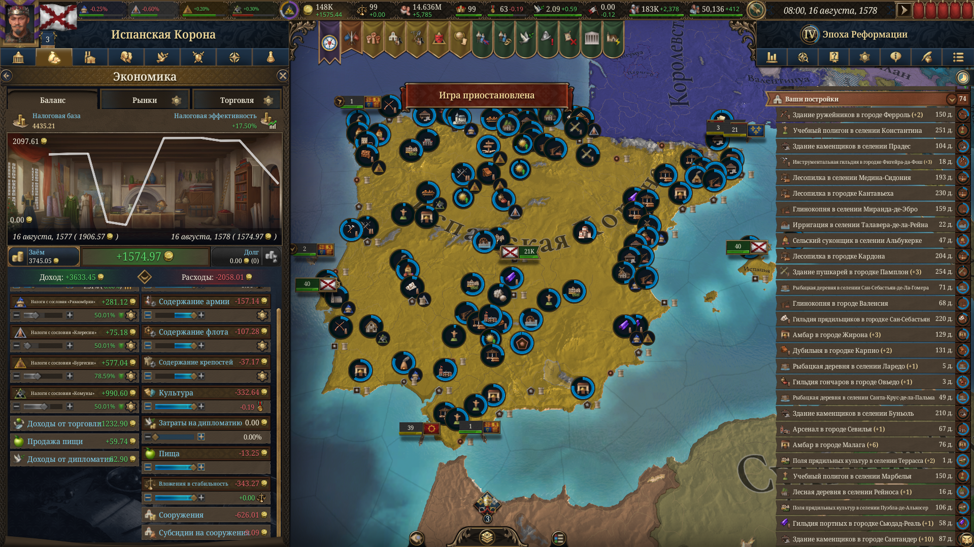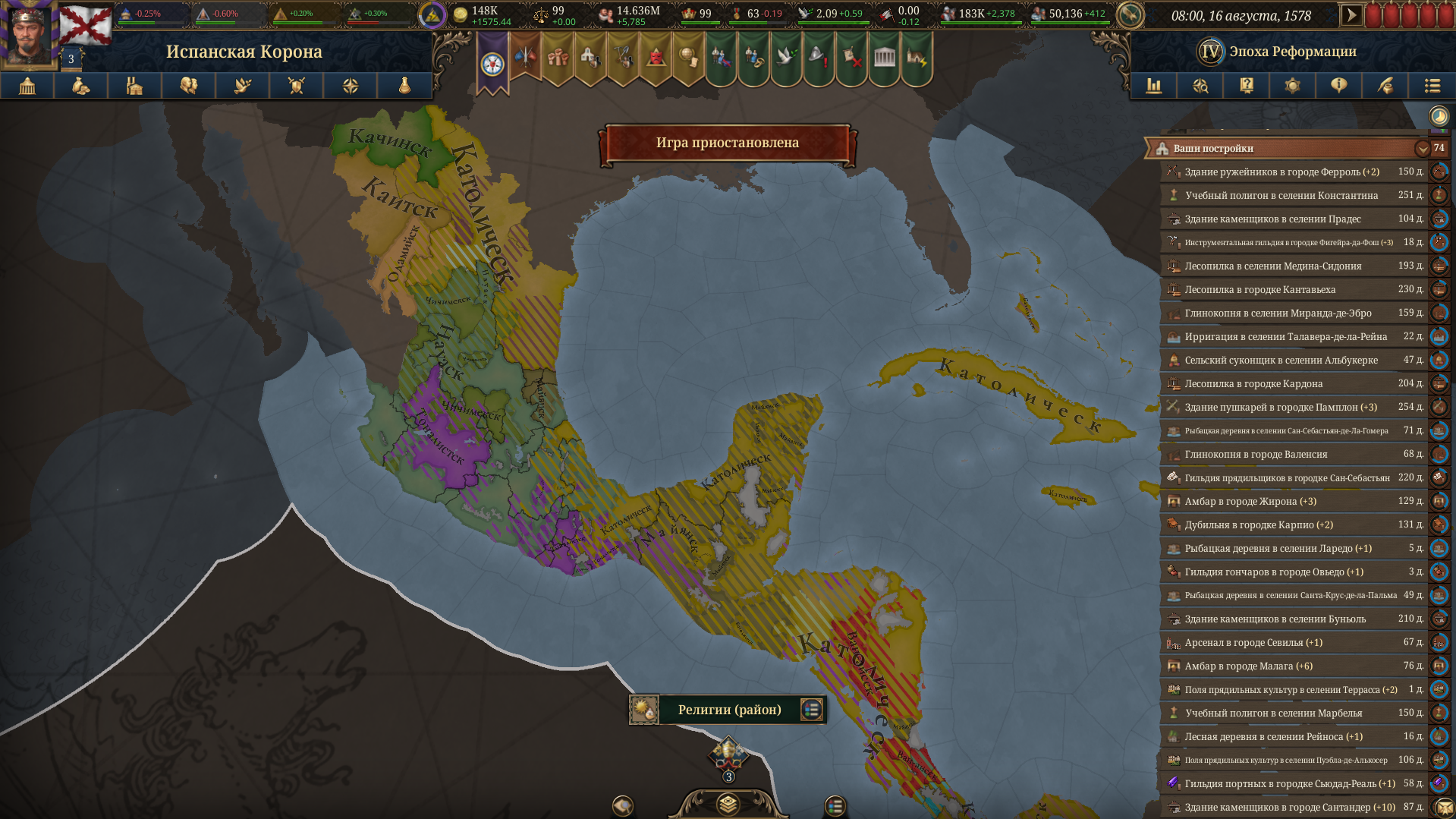 Я видел сверху в треде есть испанские идальго, дайте советов. >Во первых, как вы воюете? Я думал что для Гранады у меня будет КБ, как по миссиям в 4 часте. Но нихуя, что мне, влетать без него? >Во вторых, что мне строить? Я ткнул на автомат денежный вопрос, но я все равно хочу понять концепцию. Я смотрел видево на ютубе, там говорят строить дороги и рядом со столицей в первую очередь развивать RGO. Там говорили всегда строить то, что добівает еду и то, что рядом добывают. Например, если рядом с Вальядолидом есть шерсть, то прядильщиков, если железо то домик на иструменты и тд. >В третьих, как мне воевать? В моей партии за Милан Франция очень резво полезла в Испанию, точнее в Арагон. У меня цель на эту партию построить домики, поколонить и собрать регион Испании. Следовально, нужно сразу отсекать Арагон от Франции ебаша вдоль Пиреней червем-пидором, или что?