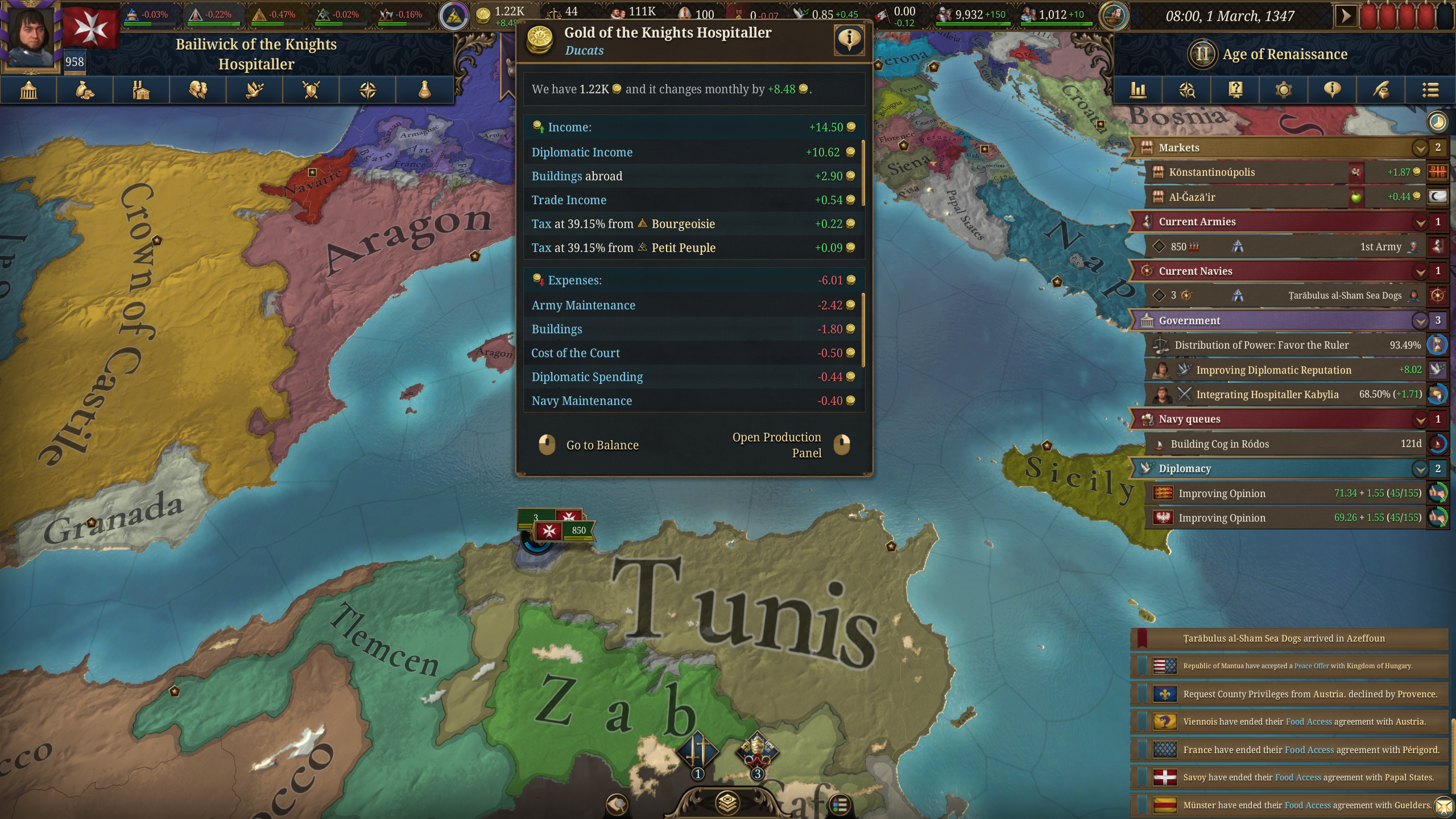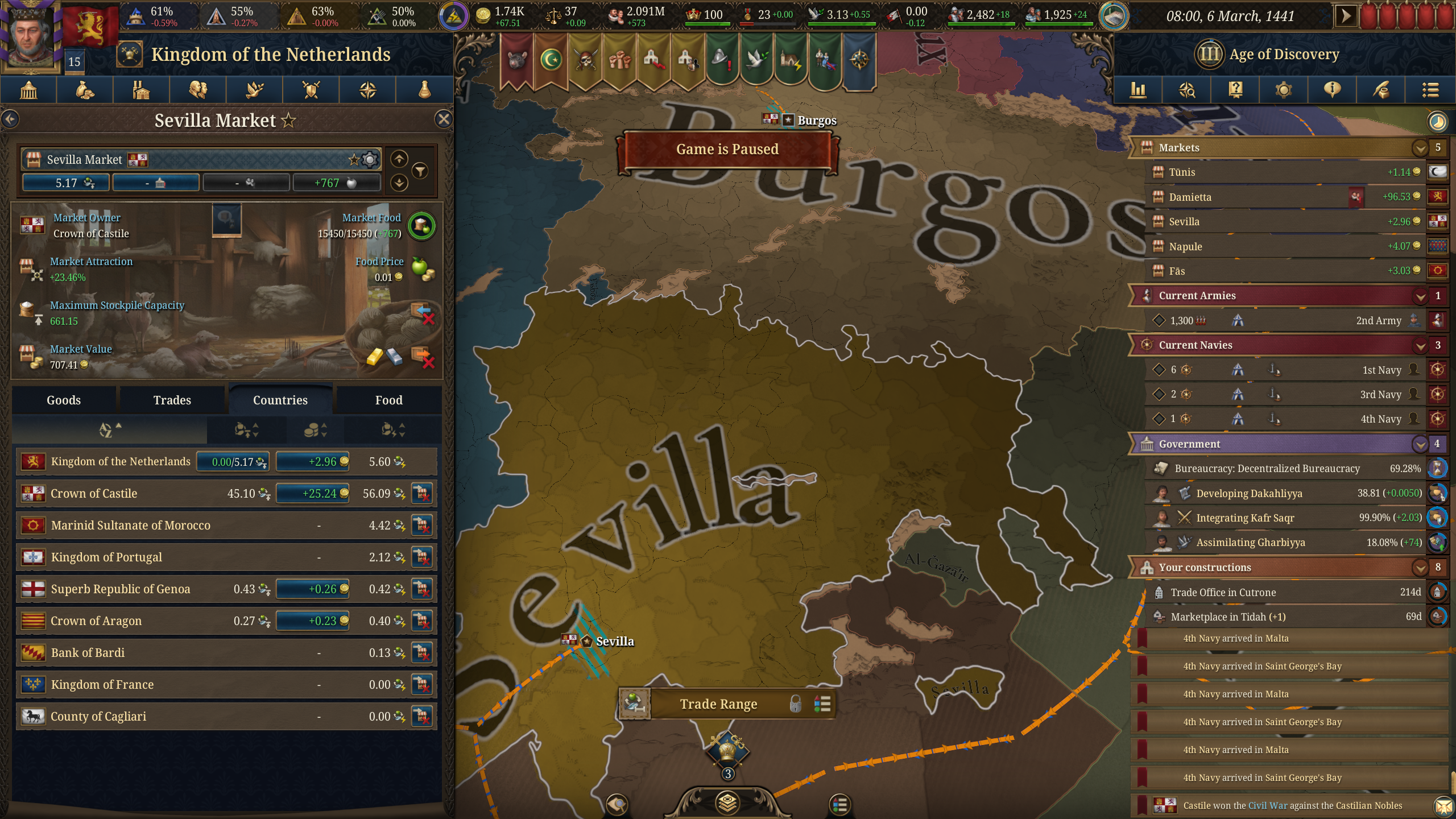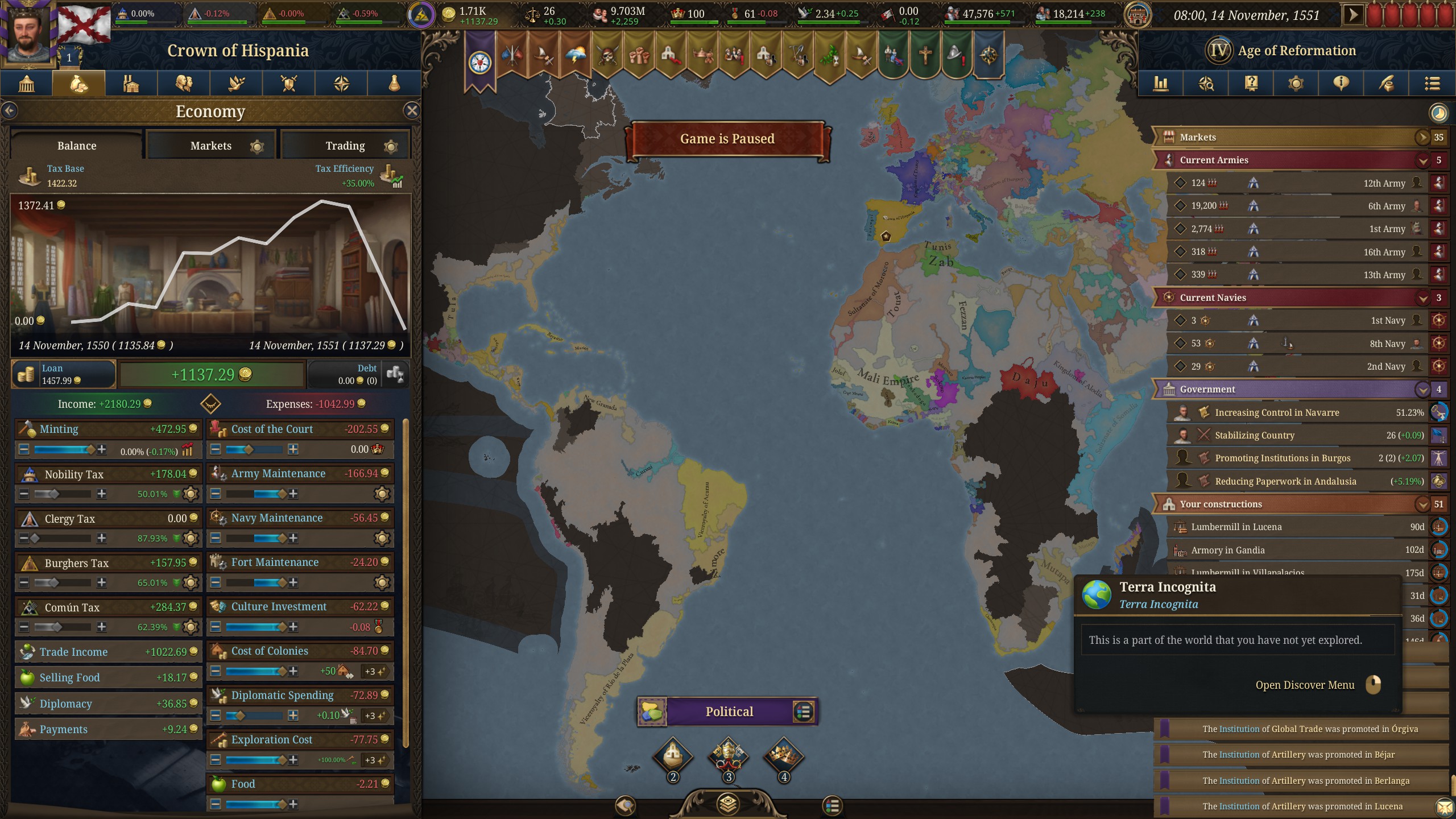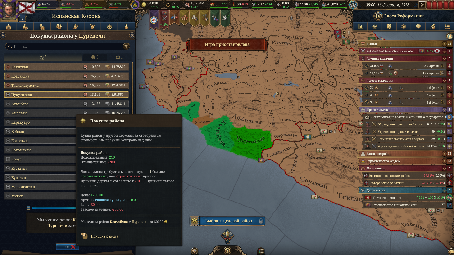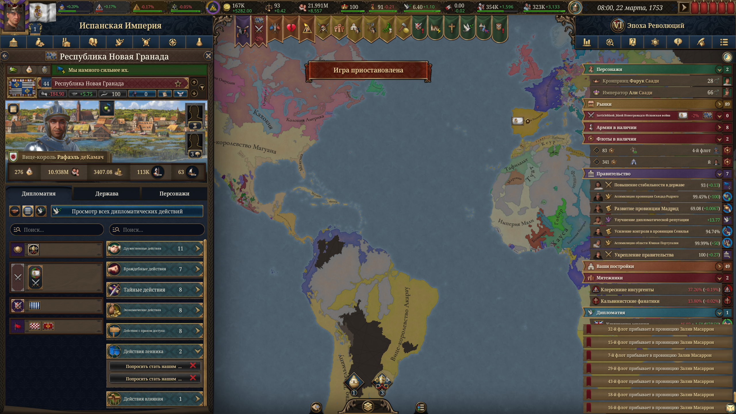 Я видел сверху в треде есть испанские идальго, дайте советов. >Во первых, как вы воюете? Я думал что для Гранады у меня будет КБ, как по миссиям в 4 часте. Но нихуя, что мне, влетать без него? >Во вторых, что мне строить? Я ткнул на автомат денежный вопрос, но я все равно хочу понять концепцию. Я смотрел видево на ютубе, там говорят строить дороги и рядом со столицей в первую очередь развивать RGO. Там говорили всегда строить то, что добівает еду и то, что рядом добывают. Например, если рядом с Вальядолидом есть шерсть, то прядильщиков, если железо то домик на иструменты и тд. >В третьих, как мне воевать? В моей партии за Милан Франция очень резво полезла в Испанию, точнее в Арагон. У меня цель на эту партию построить домики, поколонить и собрать регион Испании. Следовально, нужно сразу отсекать Арагон от Франции ебаша вдоль Пиреней червем-пидором, или что?