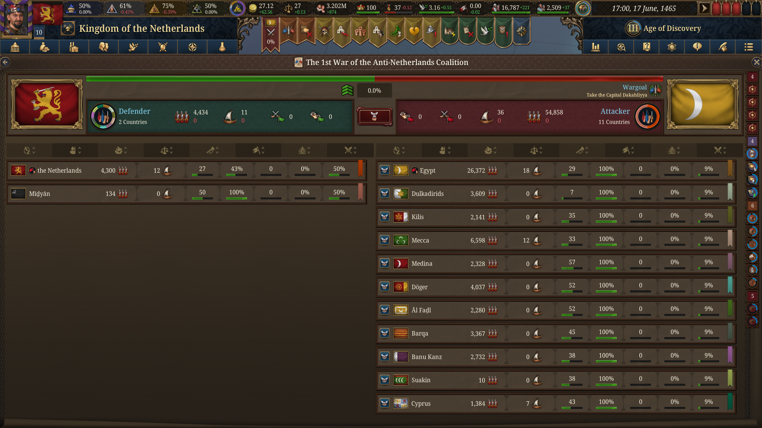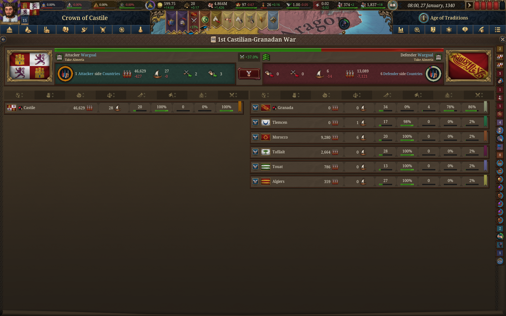 >>50482149 Не совсем понял, как ты будешь воевать за Алжир, ты про мароканско-алжирскую, которая в начале идёт? Не нужно, Алжир сосёт почти всегда, а воевать в Африке в разы сложнее, даже чем в eu4 (хотя и там был в ранних патчах ебейший атришен) - форты неосаждаемые, армия жрат просит.