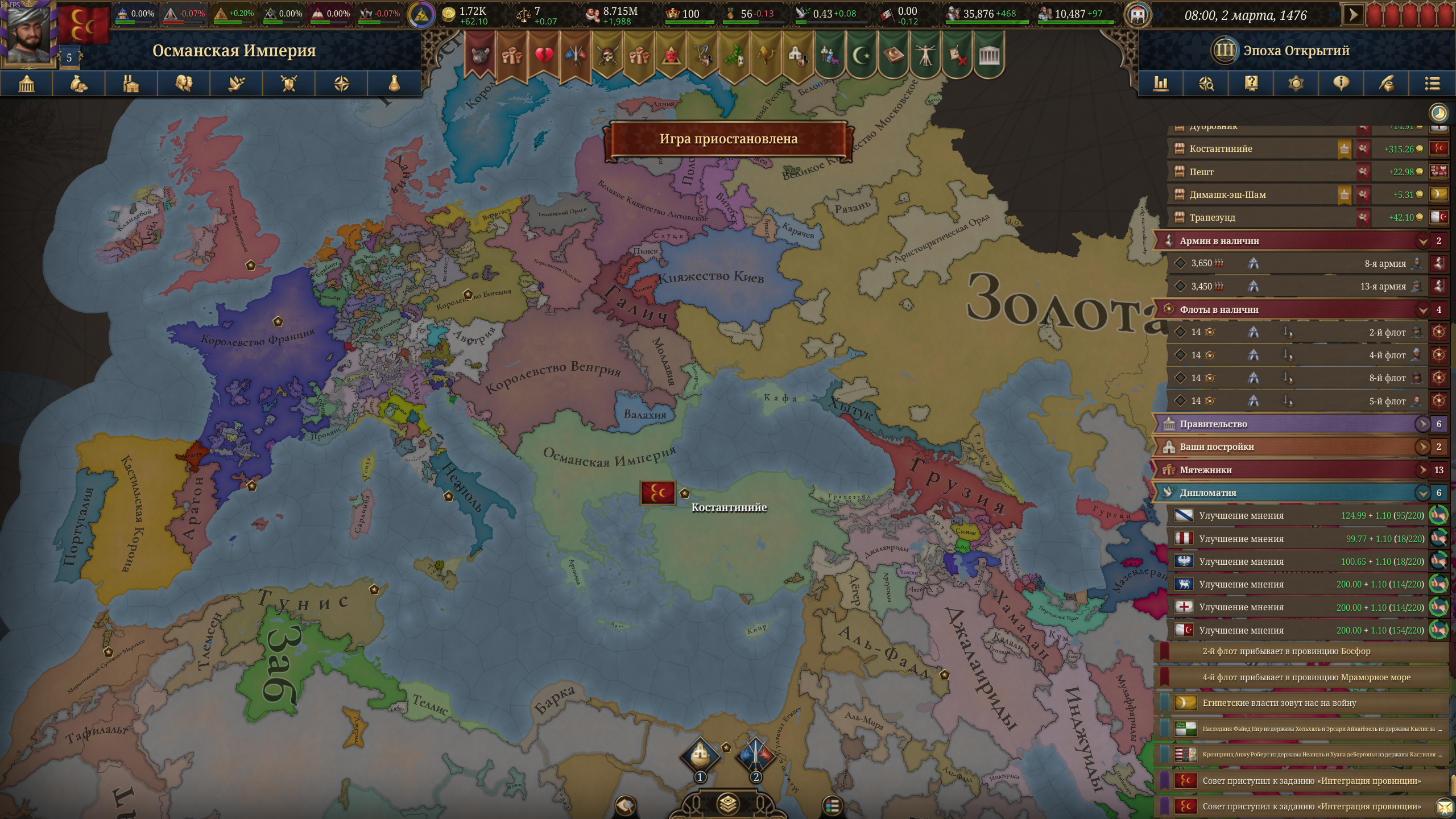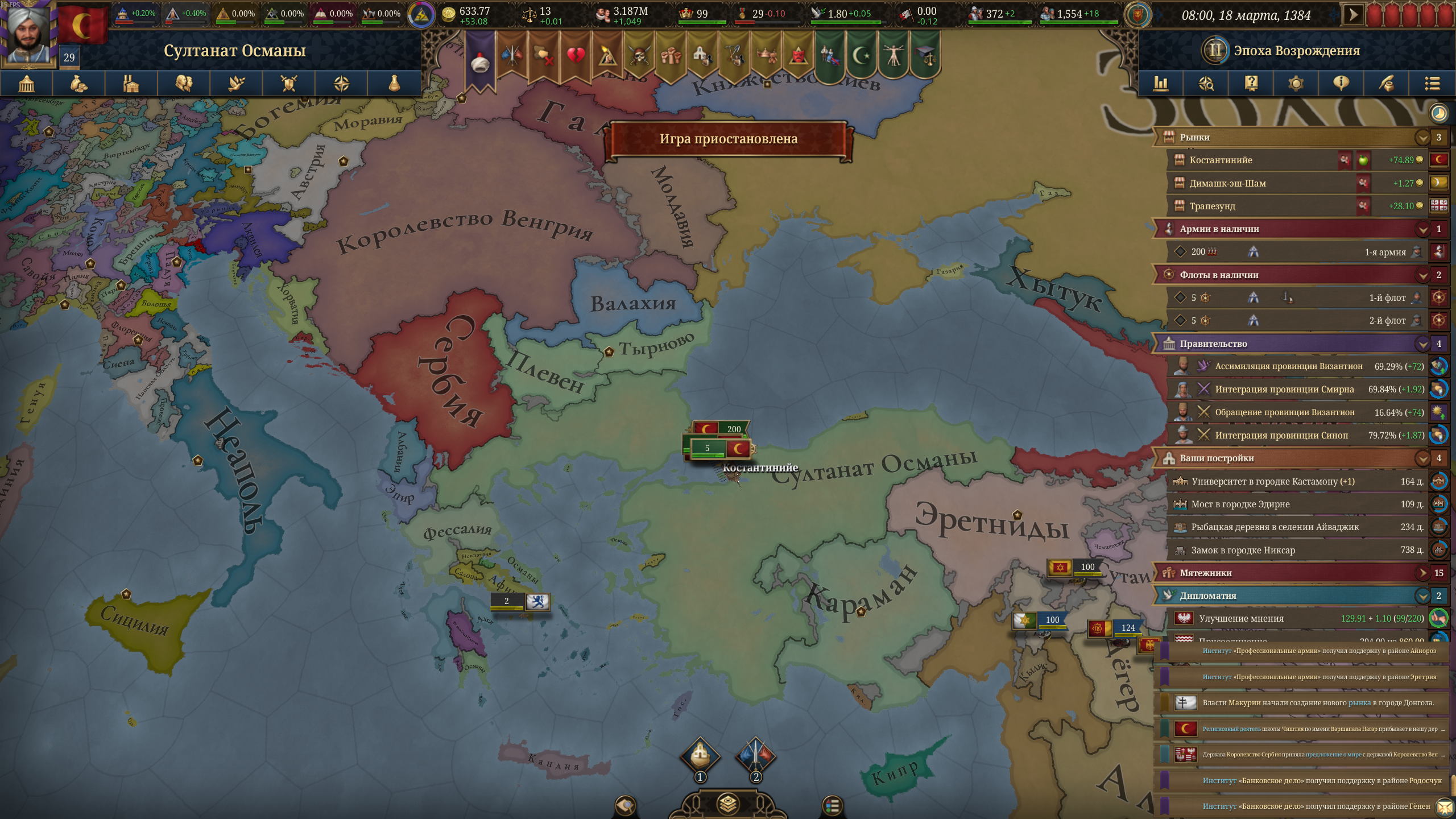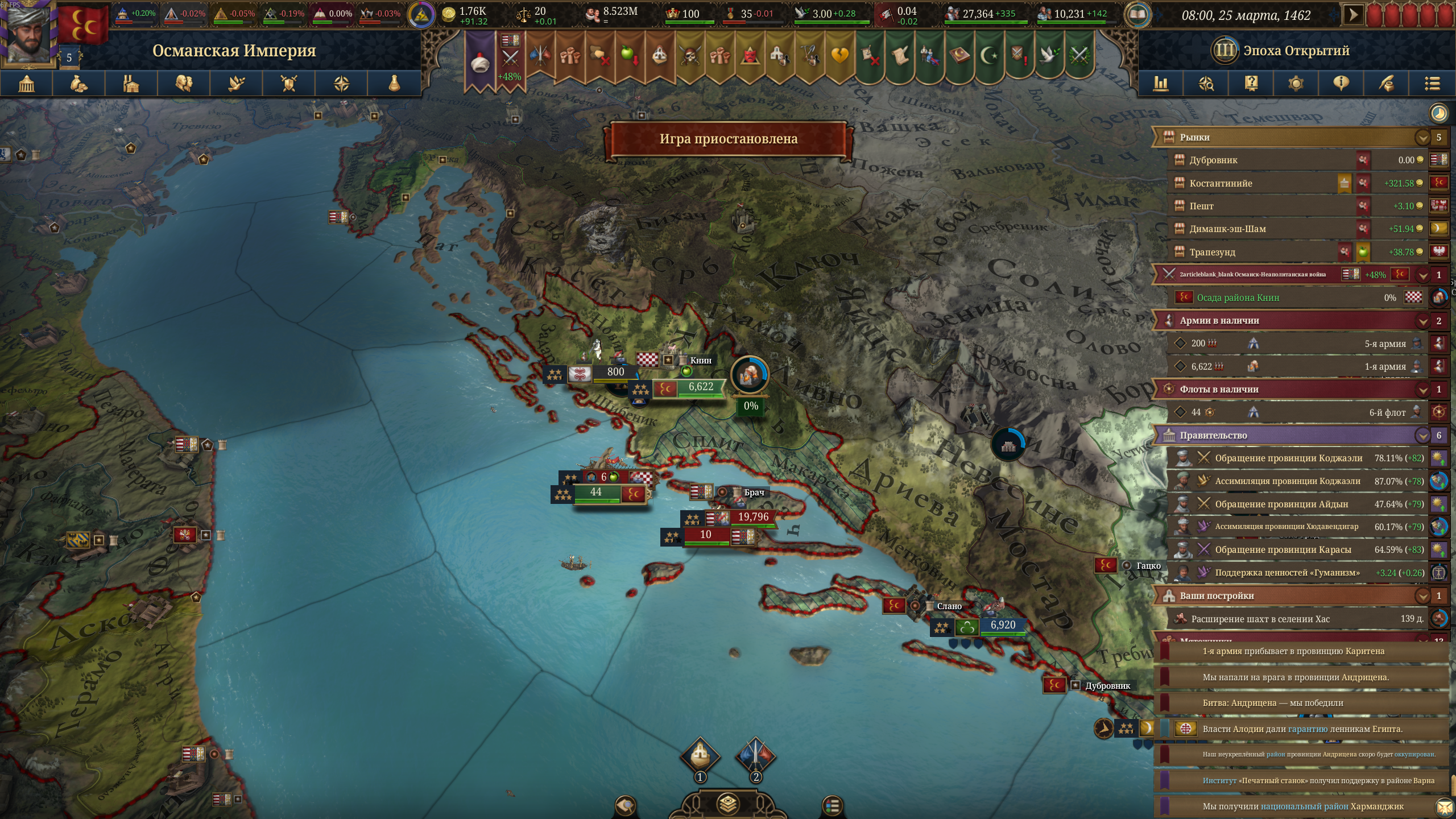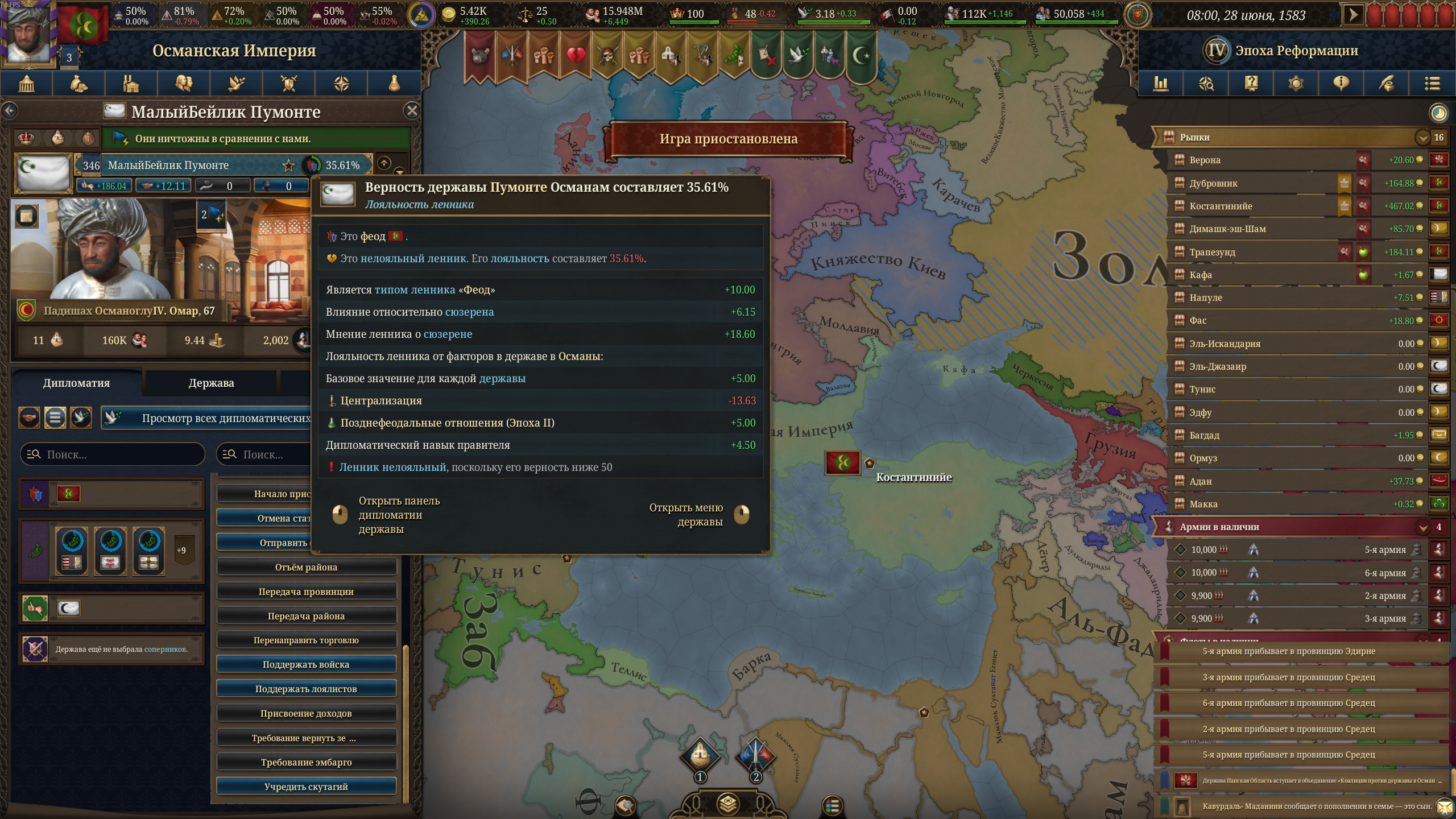 Нормальное начало игры было, даже османа опиздюлил качественно, идёт дизастер на претендента. Ну там хуйня восстание, думаю - подавлю. За два месяца до прока выскакивает эвент на -50% сатисфекшена крестьян. Результат = вместо 10к солдат поднимаю 100 человек. Думаю - хуй с ним, пусть захватят, будет норм правитель. А они не захватывают, непонятно как замириться. Вдобавок коалиция напала и восстание какое-то.