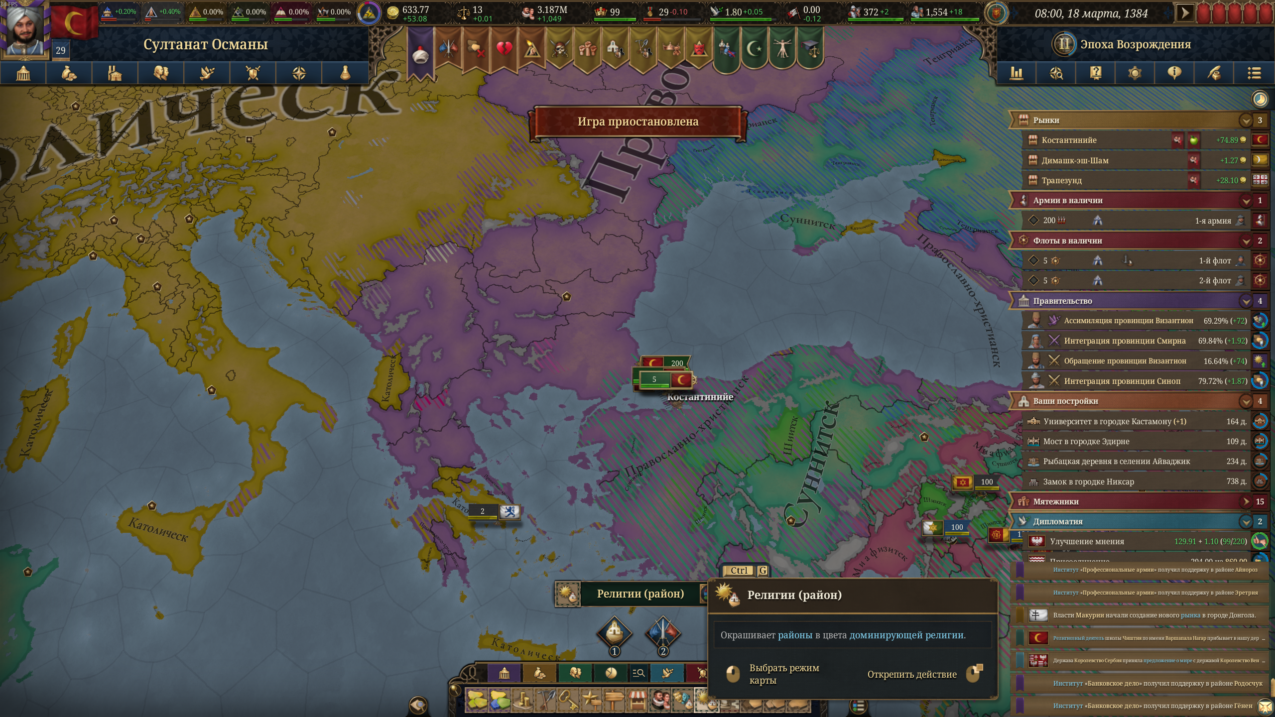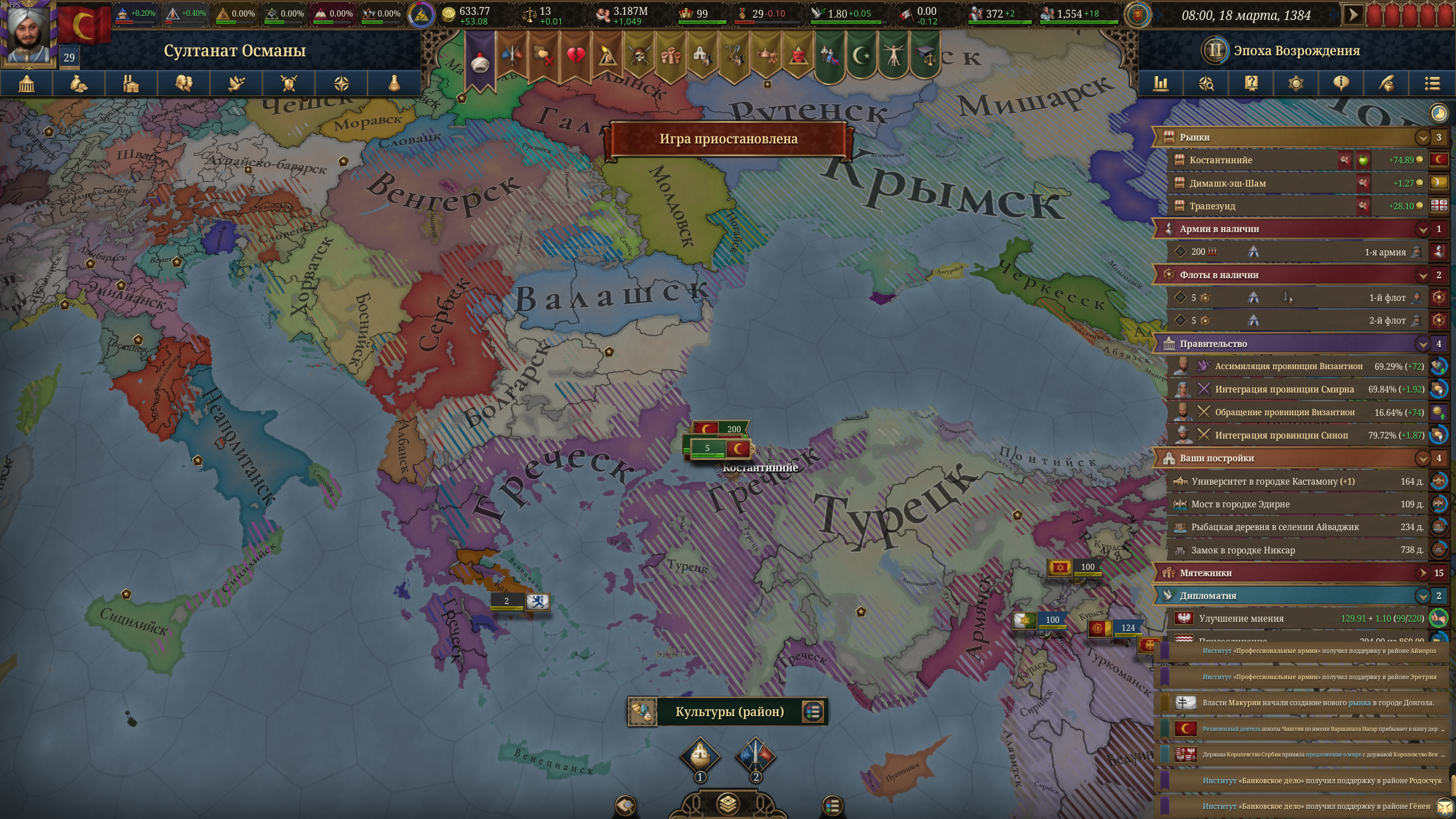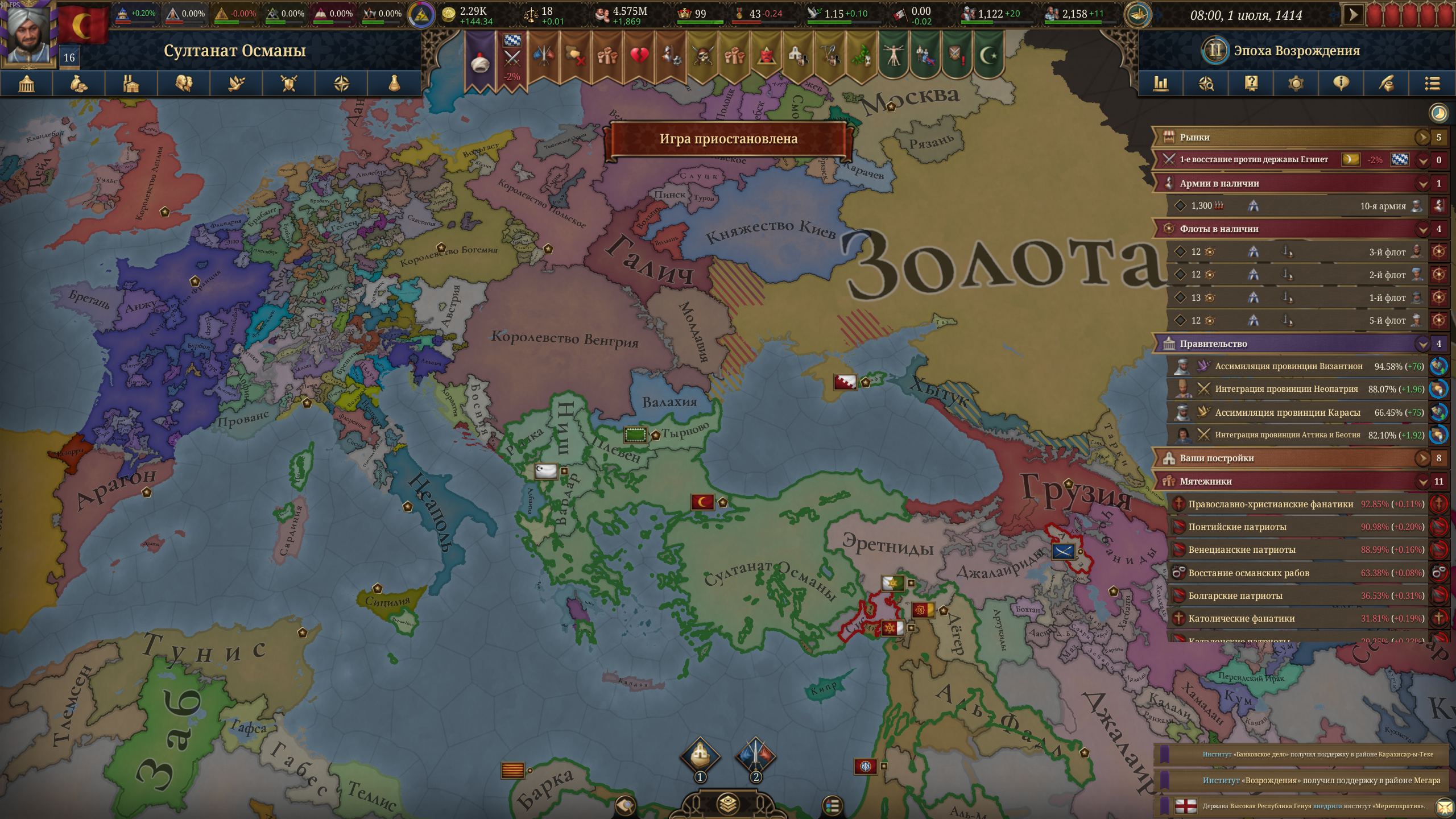 Нормальное начало игры было, даже османа опиздюлил качественно, идёт дизастер на претендента. Ну там хуйня восстание, думаю - подавлю. За два месяца до прока выскакивает эвент на -50% сатисфекшена крестьян. Результат = вместо 10к солдат поднимаю 100 человек. Думаю - хуй с ним, пусть захватят, будет норм правитель. А они не захватывают, непонятно как замириться. Вдобавок коалиция напала и восстание какое-то.
