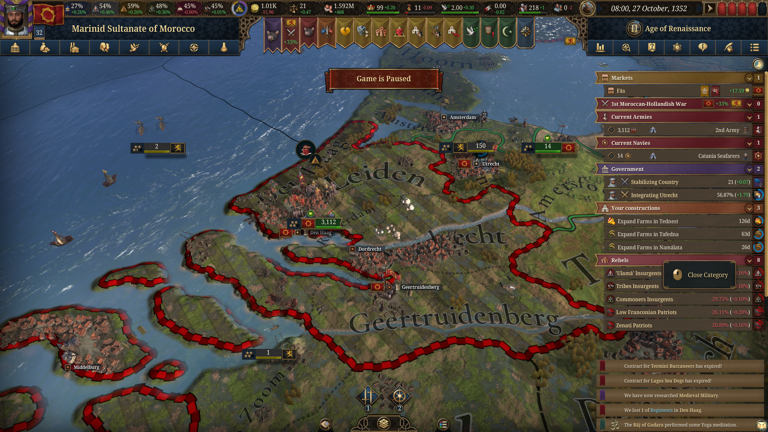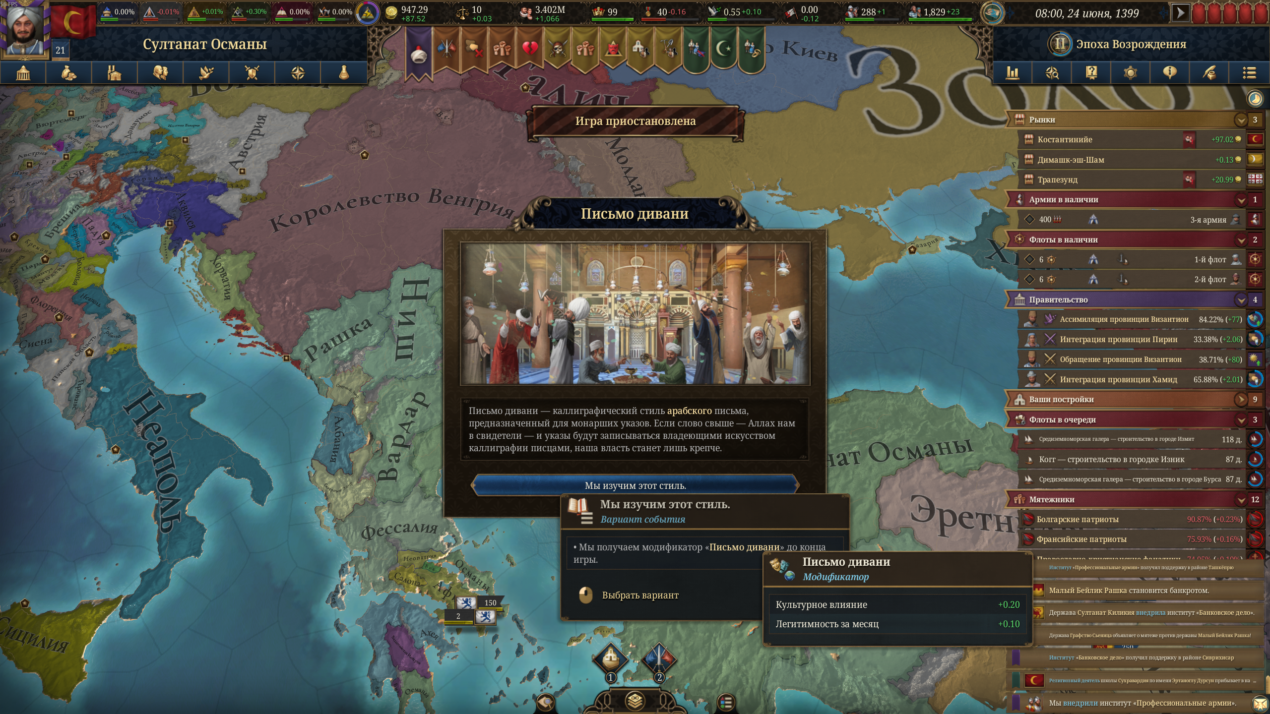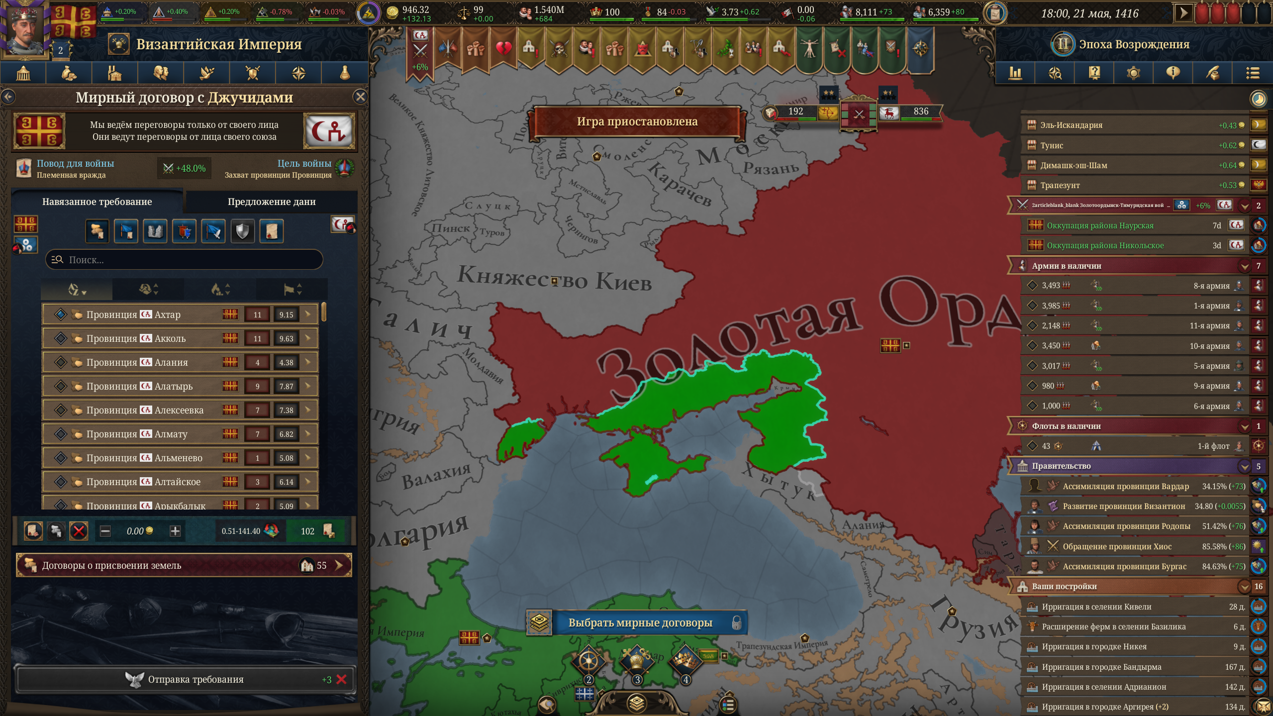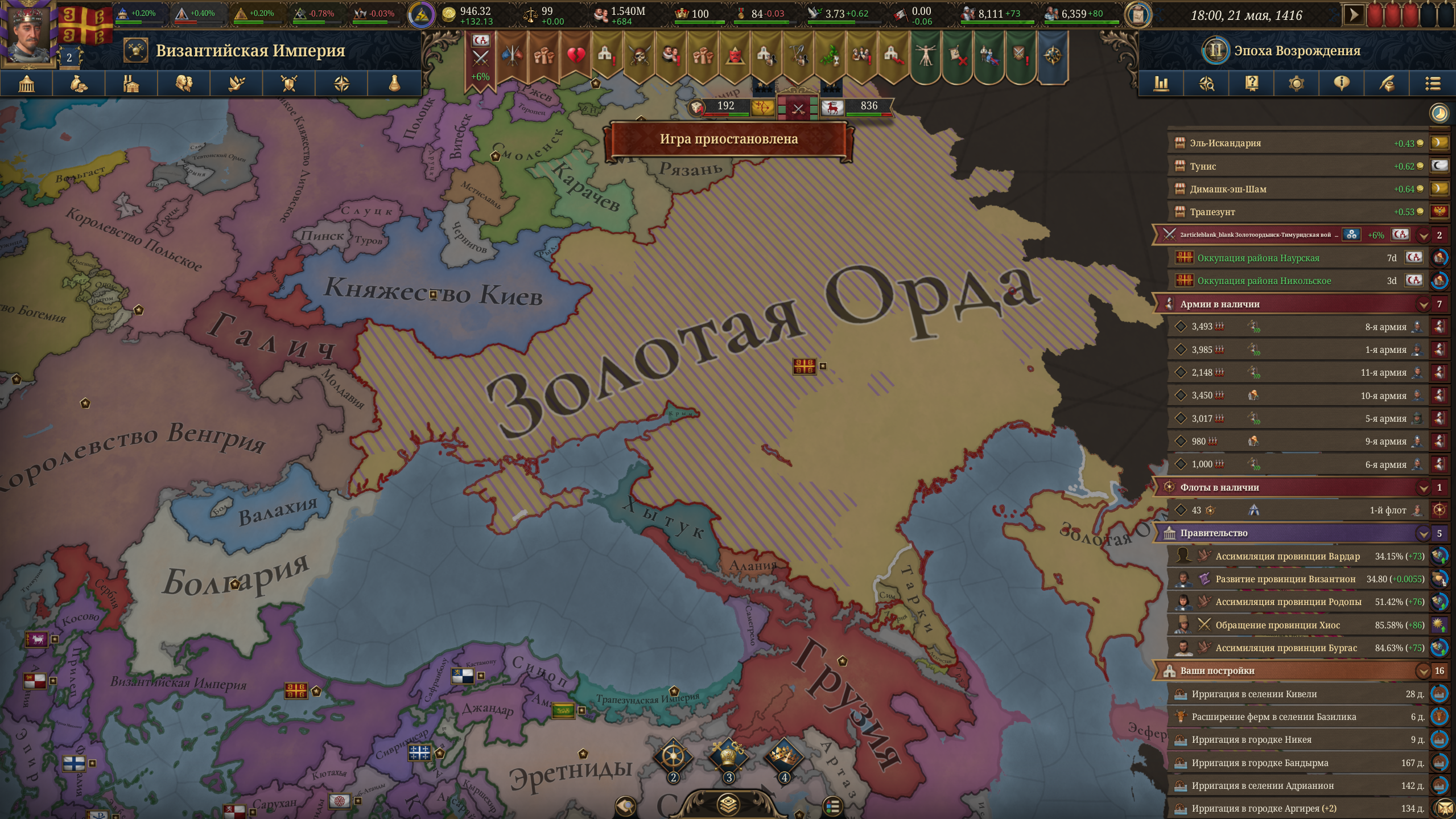 Нормальное начало игры было, даже османа опиздюлил качественно, идёт дизастер на претендента. Ну там хуйня восстание, думаю - подавлю. За два месяца до прока выскакивает эвент на -50% сатисфекшена крестьян. Результат = вместо 10к солдат поднимаю 100 человек. Думаю - хуй с ним, пусть захватят, будет норм правитель. А они не захватывают, непонятно как замириться. Вдобавок коалиция напала и восстание какое-то.