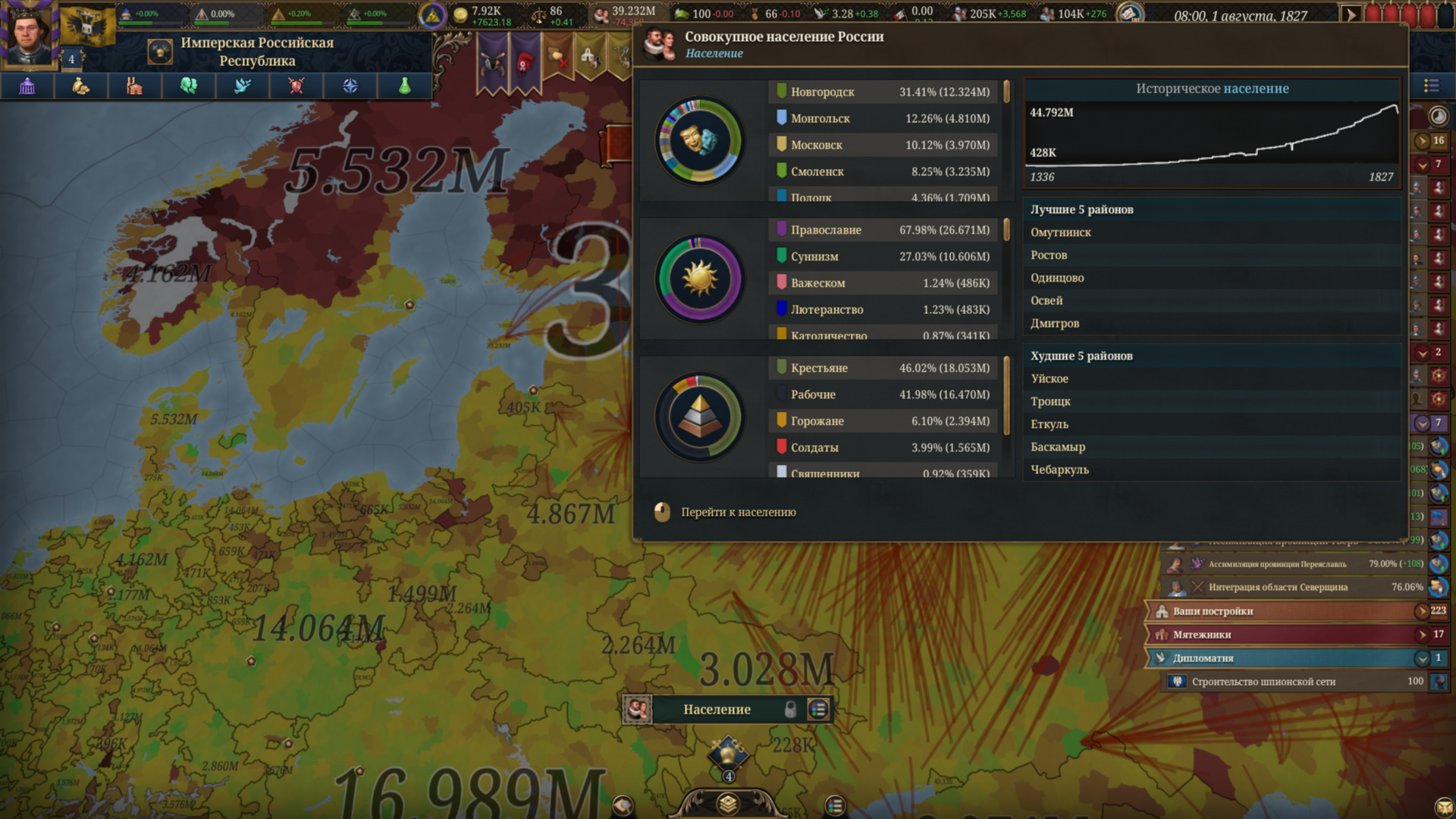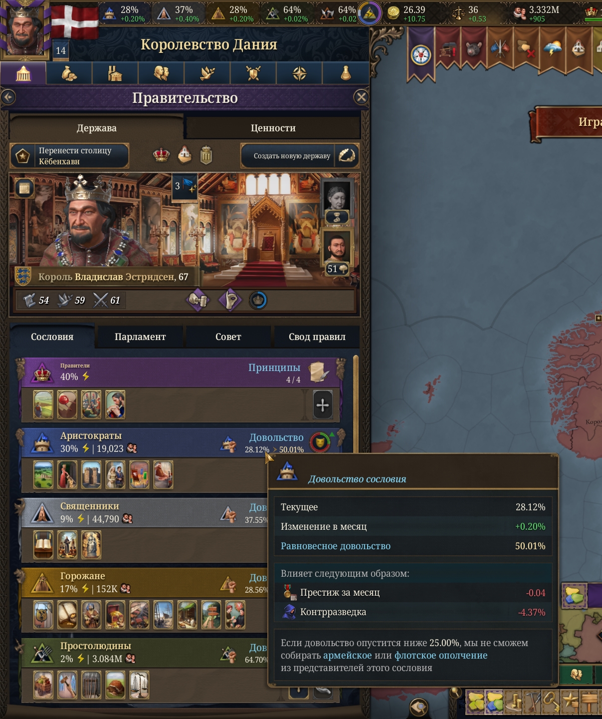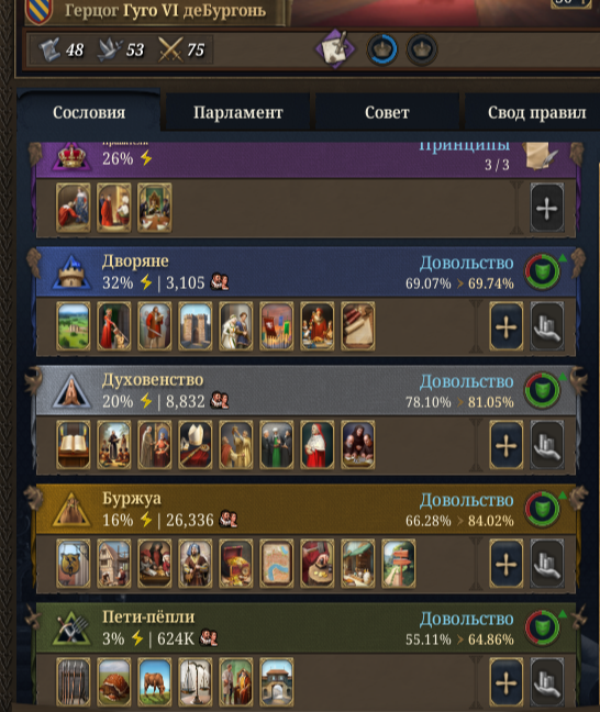 >>50482931 Ну и бтв эти скрины нужны чтобы тебе показать, что привилегии не сломают тебе налоги. Выдано миллион привилегий, но сословия все равно находятся саб 25% и есть пространство для того чтобы в законах о правах давануть аристократов и буржуа повысив им налоги еще на 10%. У меня просто законы о правах еще не открыты.