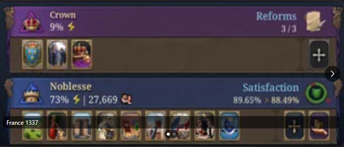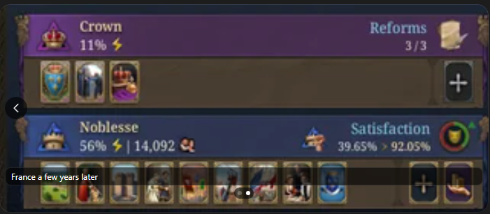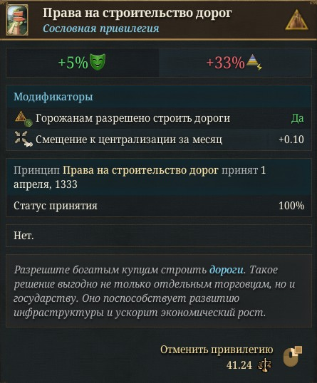 >>50482890 Тебе так или иначе надо давать привелегия сословиям, чтобы их довольствие расло. Парочку каких-нибудь «+5 довольства +25 сила сословия» — и ты в шоколаде.